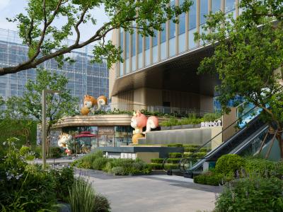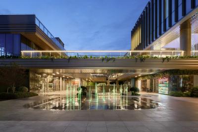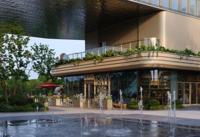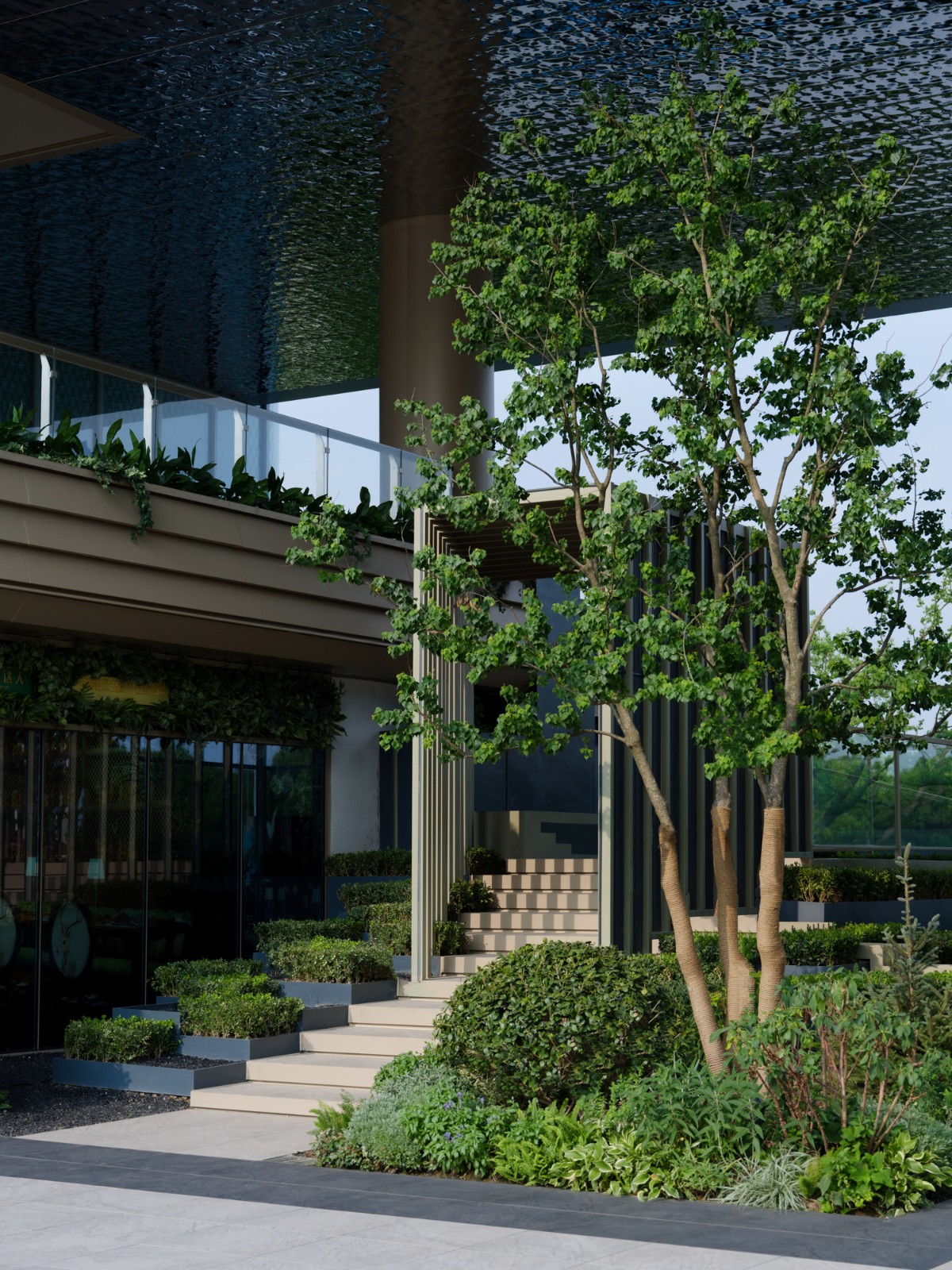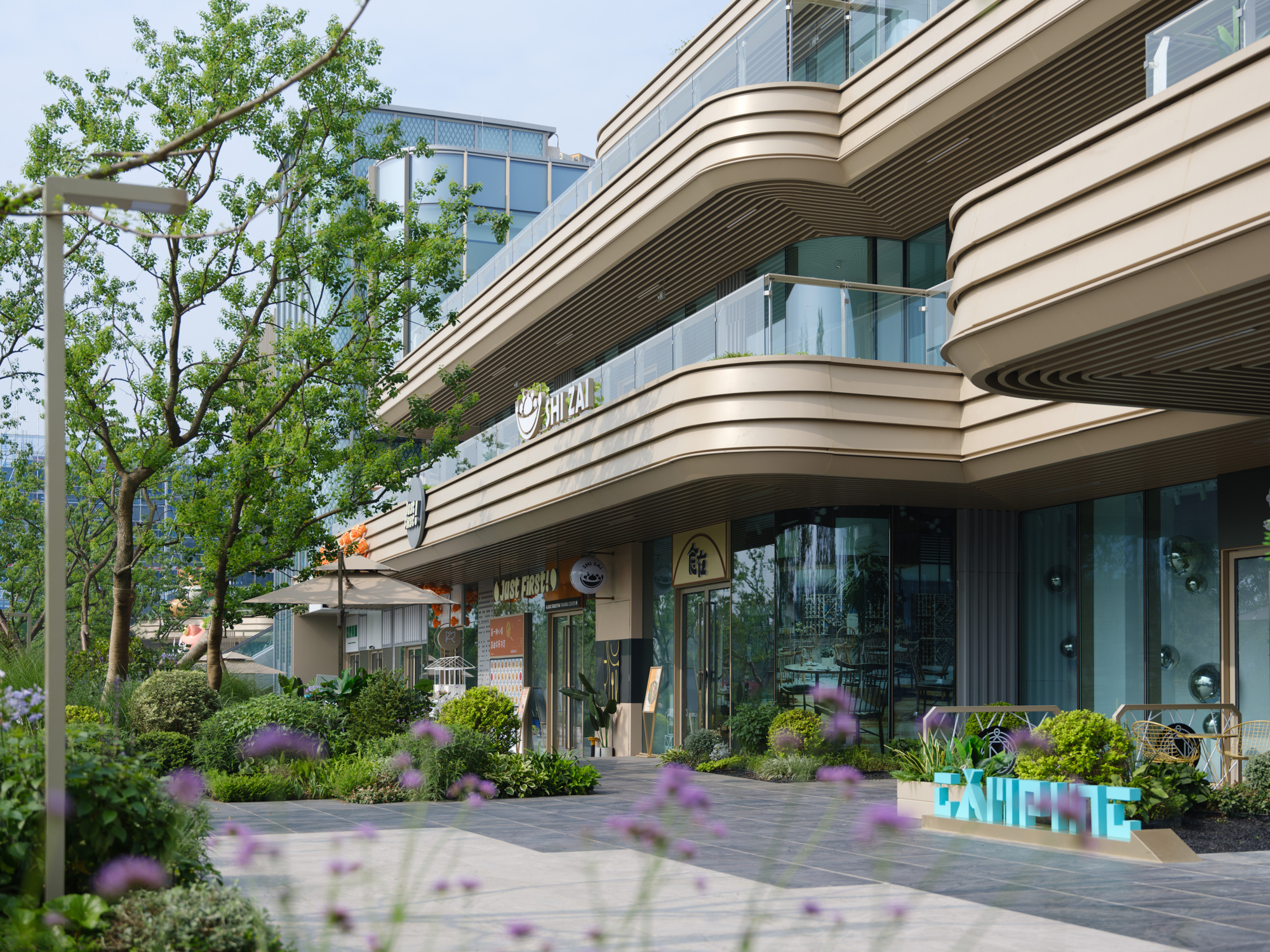 綠意向前,臨近建筑一側(cè)是更具生態(tài)商業(yè)化的場(chǎng)景式布局,植物與建筑融合新生,一方面強(qiáng)調(diào)在地的文化性,一方面凸顯生態(tài)創(chuàng)造性發(fā)展的碰撞性,從而構(gòu)筑形成綠色、生態(tài)、生長(zhǎng)、共生的商業(yè)景觀形態(tài)。
