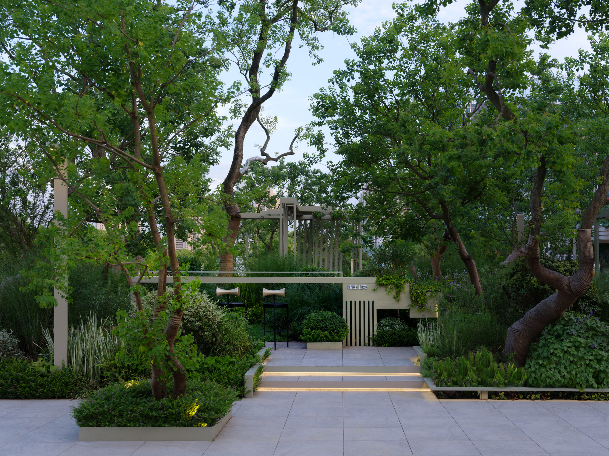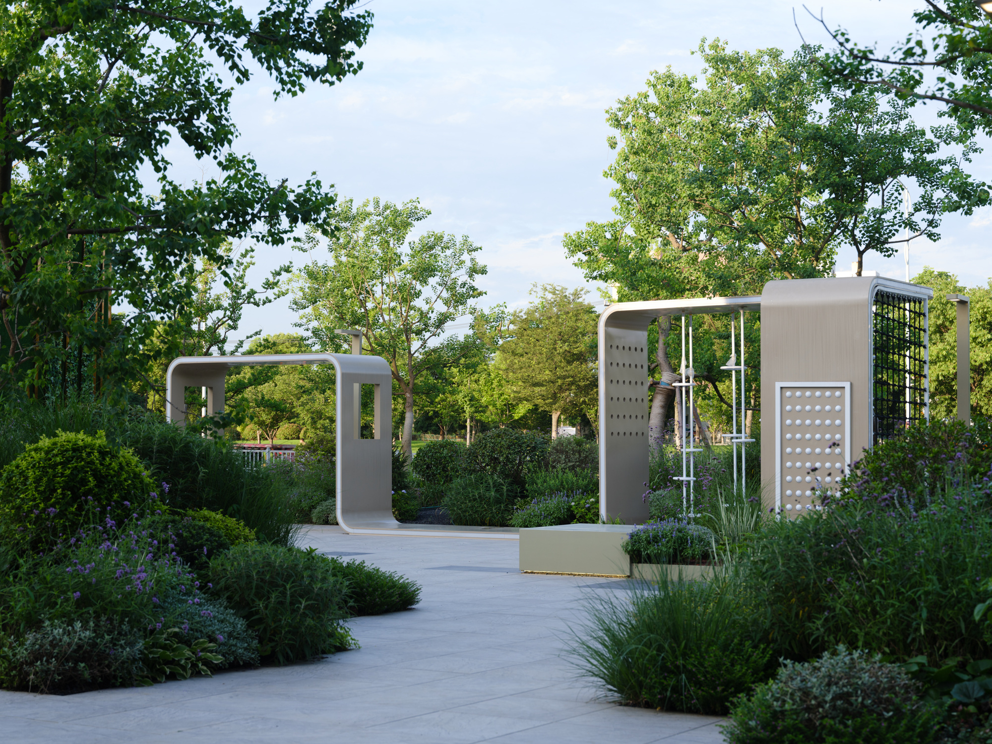 隨著觀覽體驗(yàn)的不斷深入,你會(huì)邂逅錯(cuò)落有致的金屬架構(gòu)營(yíng)造而成的休憩空間,也會(huì)循著森林的觸角,步入到不斷生長(zhǎng)進(jìn)化而成的“森野律動(dòng)之境”。不同鋪裝模數(shù)尺寸平面與空間上的分解漸變,搭配跌級(jí)綠化種植,大小模數(shù)深淺顏色對(duì)比,組合而成極具趣味的林下空間,讓空間歸于自然,讓自然疊加體驗(yàn)。