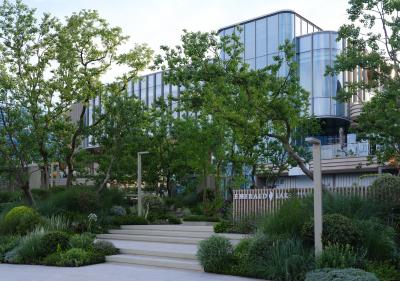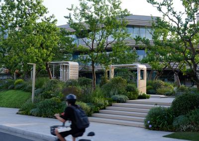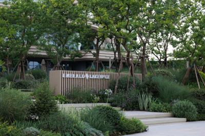 在城市周界的處理上,我們以特色的植物組團(tuán)為媒介,給繁忙都市以“緩沖退隱”處理。帶狀花境鐫刻場(chǎng)地印記,為通行界面創(chuàng)造停留的同時(shí),關(guān)于城市的自然新生也一并帶入到項(xiàng)目之中。