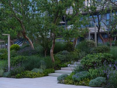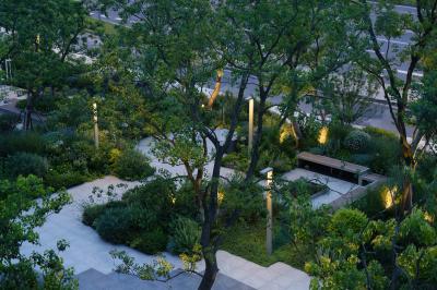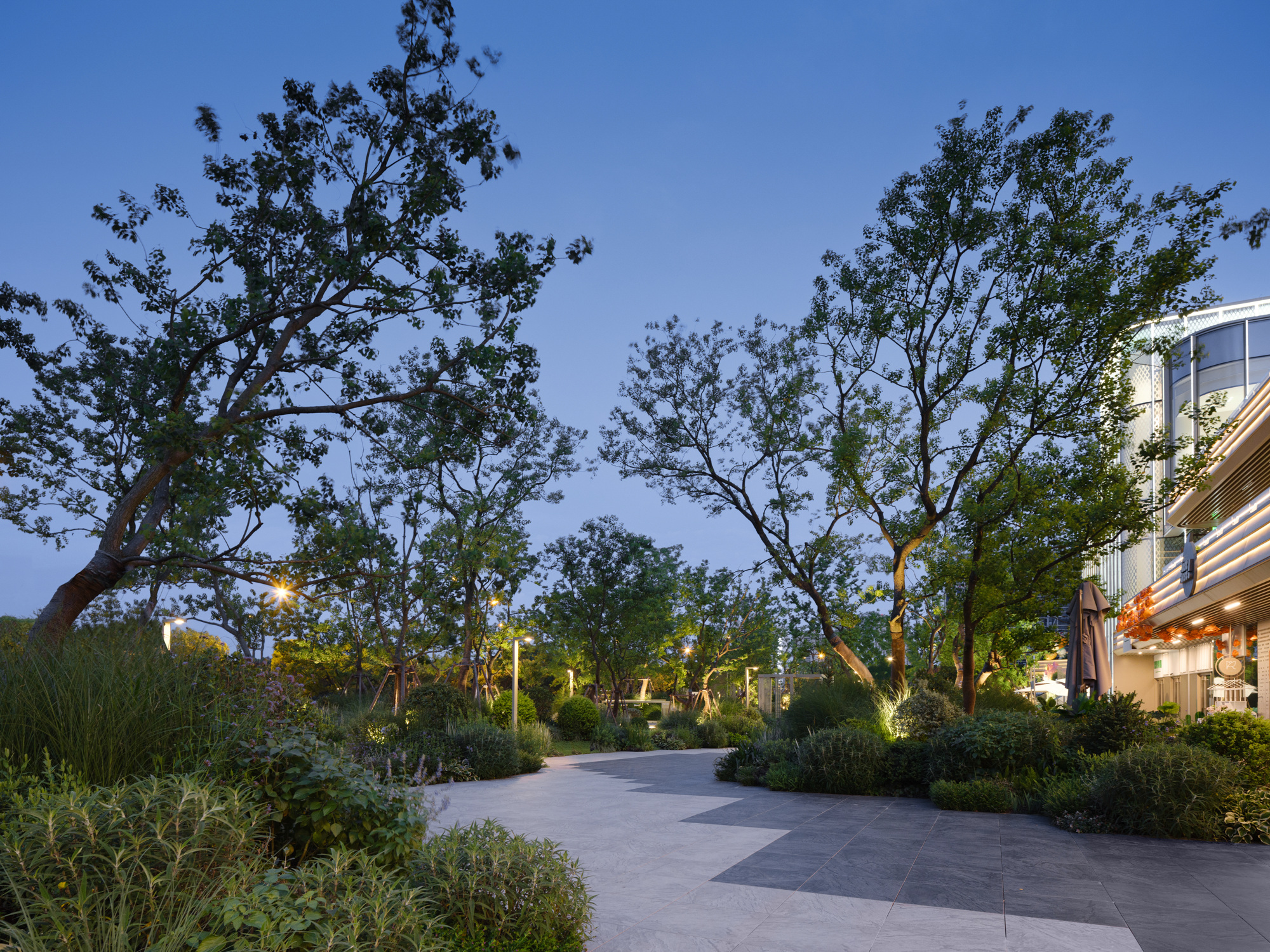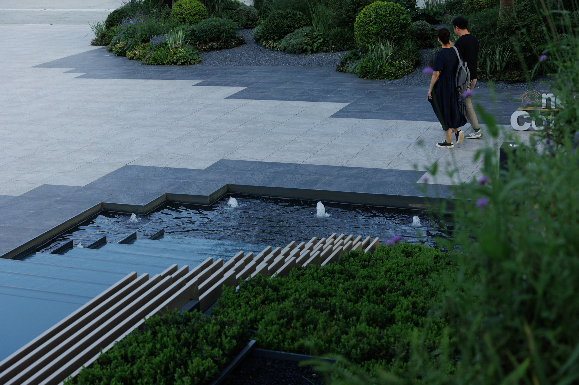 從規(guī)劃、設(shè)計(jì)、選材、植栽,到現(xiàn)場(chǎng)水電、施工、結(jié)構(gòu)、園建的整改再優(yōu)化,每一張圖紙、每一處種植池、每一塊石材鋪地、每一條街區(qū),無(wú)不經(jīng)過(guò)日夜兼程的推翻與重來(lái)、嚴(yán)密的推敲與描?。粡姆桨笜?gòu)思到施工落地,設(shè)計(jì)團(tuán)隊(duì)多次與甲方溝通,探討和啟發(fā)碰撞,反復(fù)檢查與反復(fù)糾正保證“公園式街區(qū)”的最佳效果落地。作為空間設(shè)計(jì)師我們是創(chuàng)造者也是堅(jiān)守者、捍衛(wèi)者,我們要確保創(chuàng)造出來(lái)的景觀生境為周?chē)鸀楫?dāng)?shù)貛?lái)可持續(xù)發(fā)展的現(xiàn)實(shí)意義,并與在地文化一同生長(zhǎng)影響這片土地的人與生物,我們創(chuàng)造著景觀這一媒介既與外在的客觀環(huán)境交融,又與使用者的精神世界相通,一種創(chuàng)新性的社區(qū)生活將在細(xì)致的洞察與匠心精工下締結(jié)新生。