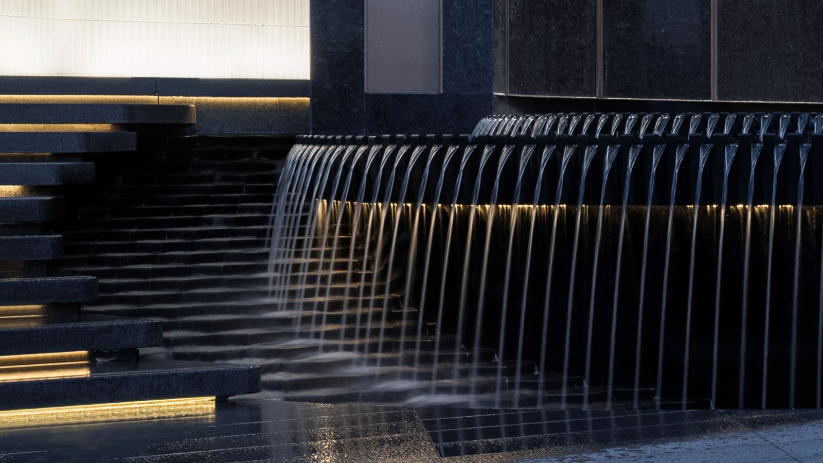 場地在水平方向上序列發(fā)展,漂浮在水上的玻璃盒子,輕盈飄逸,打破人與自然之間的隔閡,空間通過片墻的形式組織空間關(guān)系,構(gòu)成層層遞進的庭院,原本單調(diào)乏味的線性空間由此而變得豐富立體。