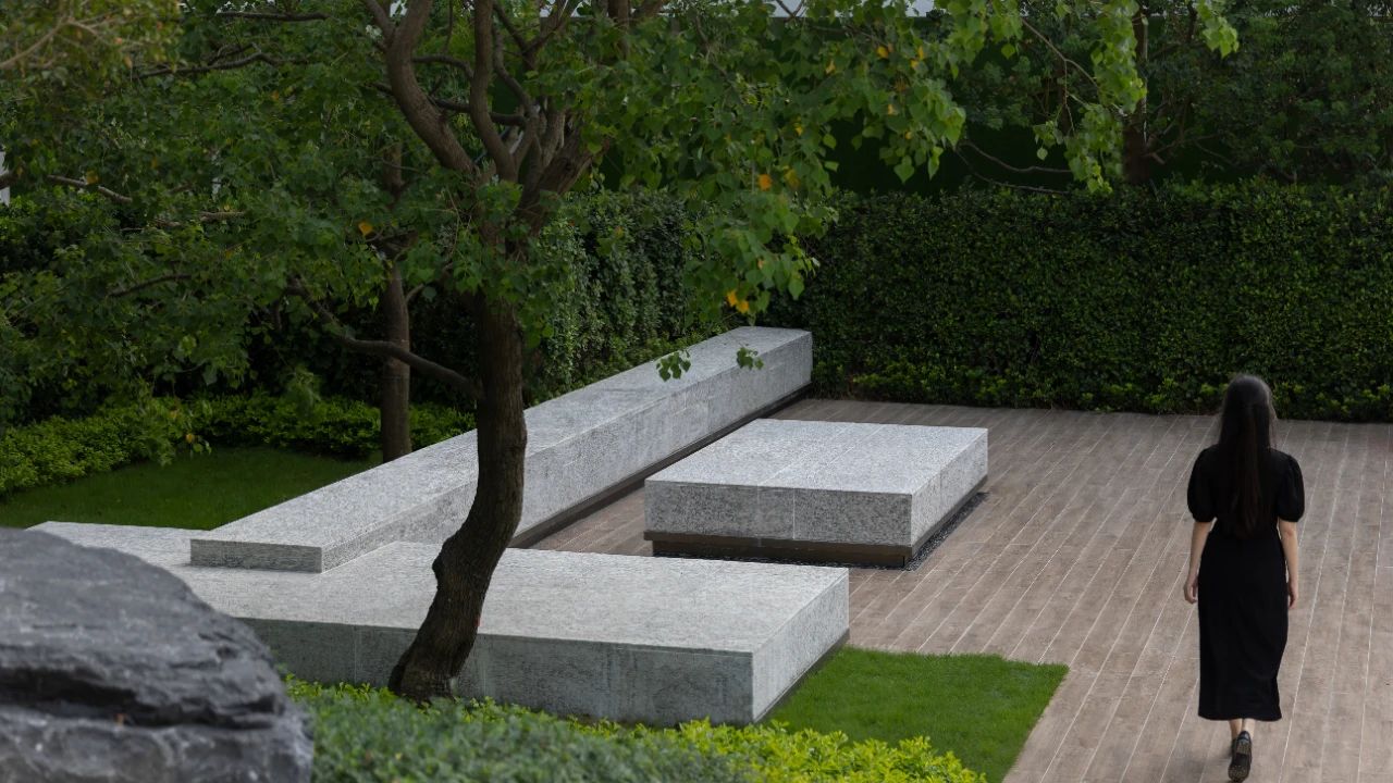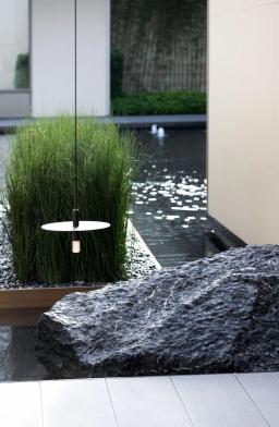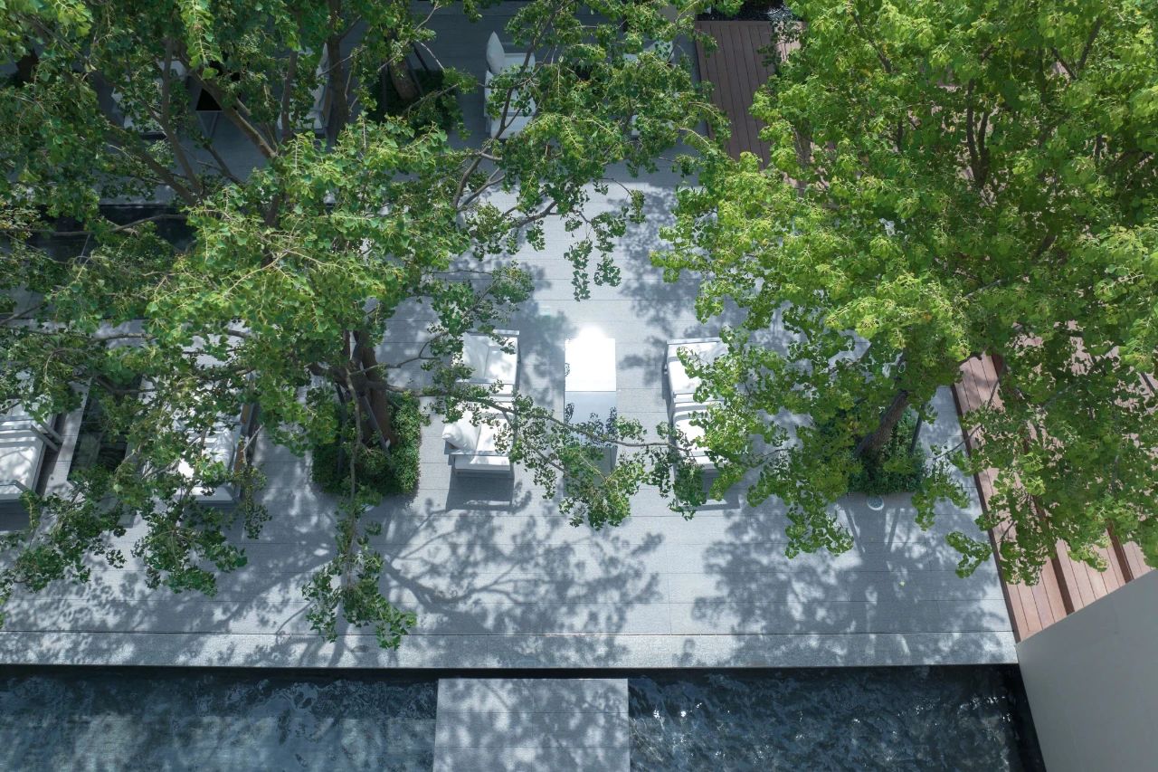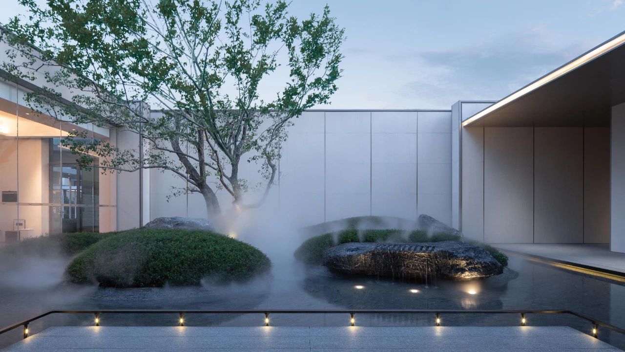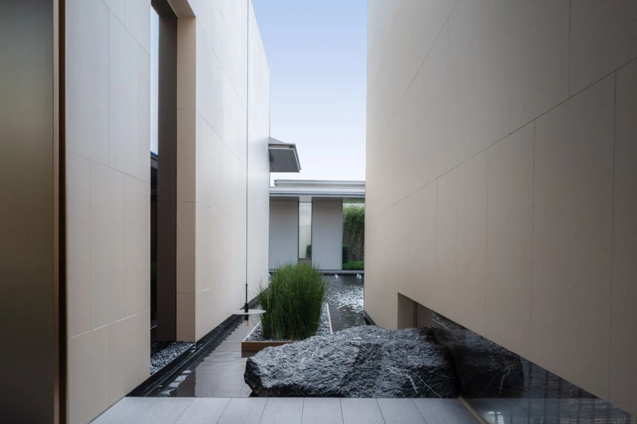 一棵樹,一川流水,一抹陽光,一處璞石……禪意干凈的空間處理手法,令空間自然而藝術(shù)、隱逸而漂浮,回歸生活,致敬心靈,于一隅庭院,細賞溪水撫石苔,一川芳草綠生煙。