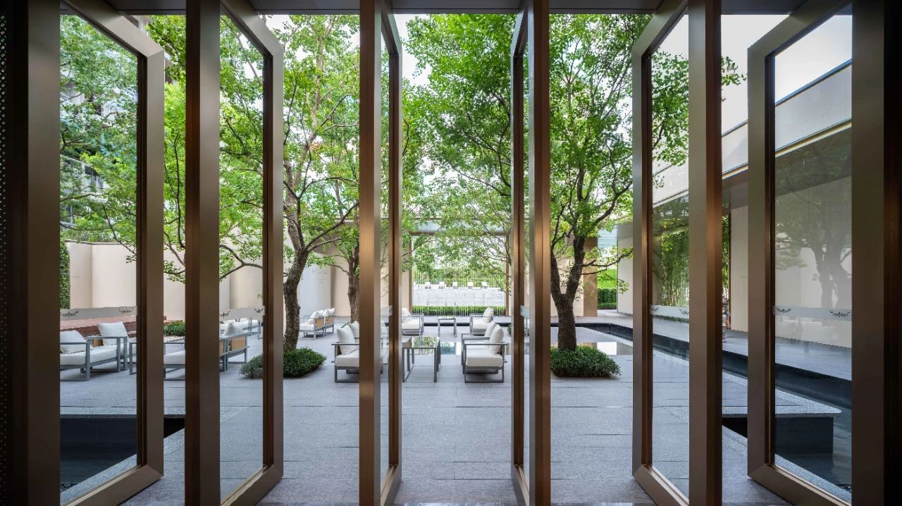 設(shè)計突破傳統(tǒng)“敘事般”的直線平面布局,六重主題式庭院塑造出豐富的場景感,曲折迂回的空間動線上,開合有致的尊貴序列引人入勝。