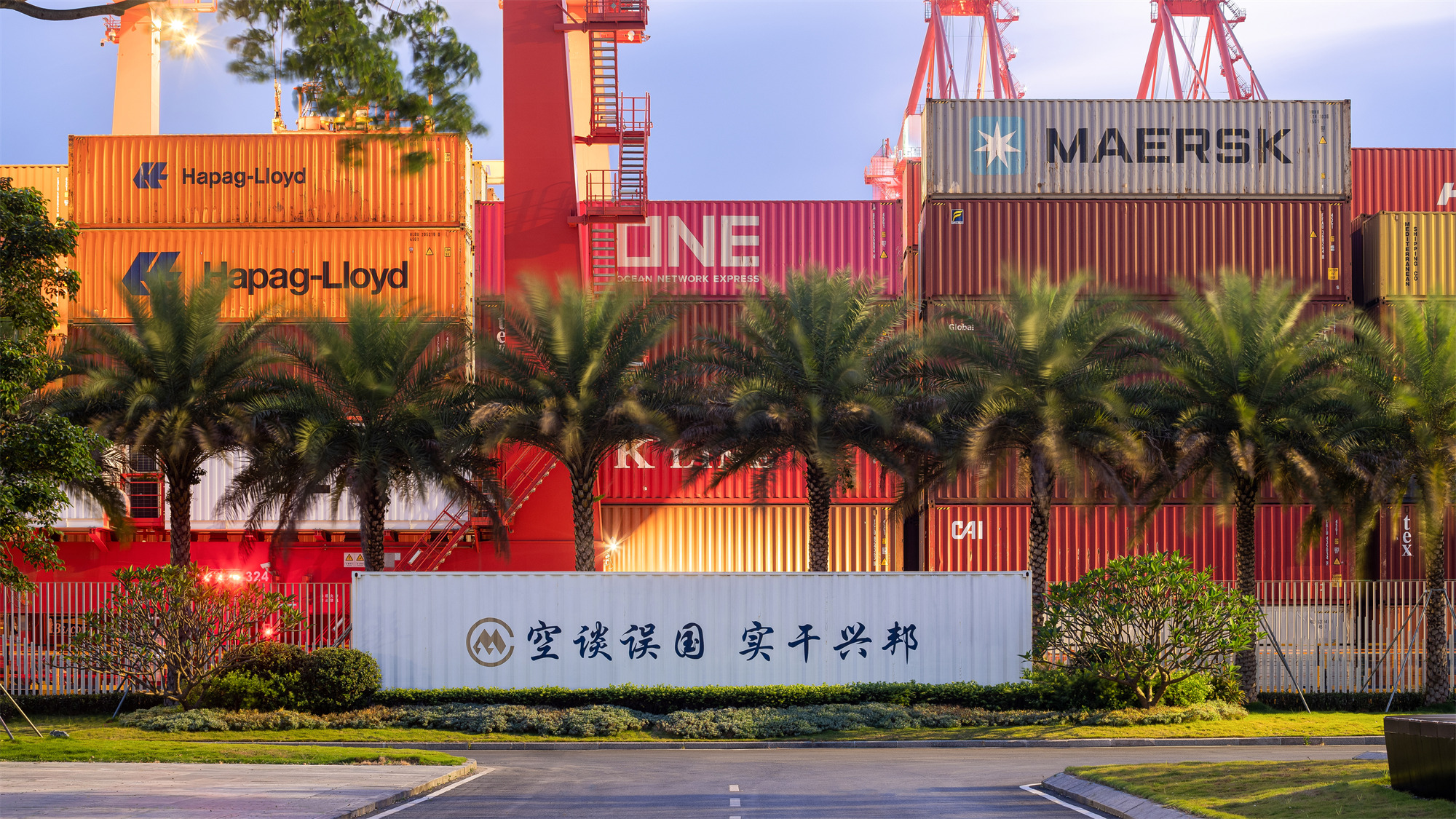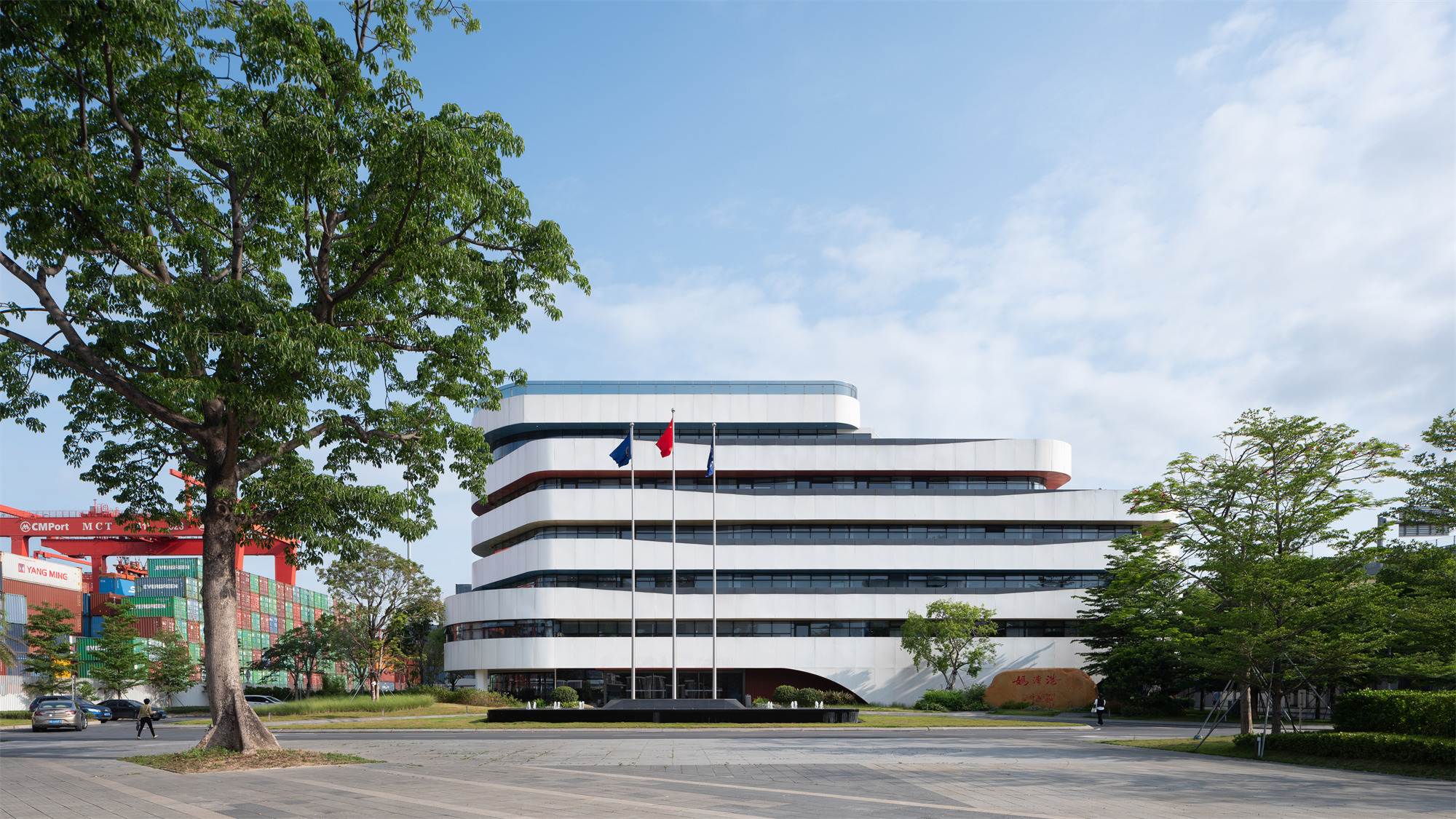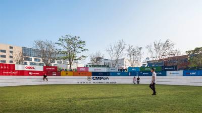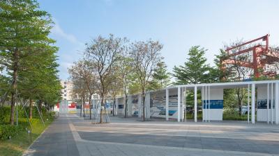 The uniquely planted kapok stands up like a hero, and the ground is engraved with the port's global network map, which is both the business map of China Merchants Port and the dream of China Merchants Port. The culture wall takes the port container as the background, and the wall continues the vertical texture of the container, reflecting the industrial characteristics. The inscription on the wall reads "Empty talk is misleading to the country, practical work will build up the country", which is the best illustration for the struggle history of China Merchants Group in the past hundred years. The sea breeze passes through the Phoenix sylvestris’ forest, and the ships are weaving like the heartbeat of the times, knocking out a strong and unceasing sound.