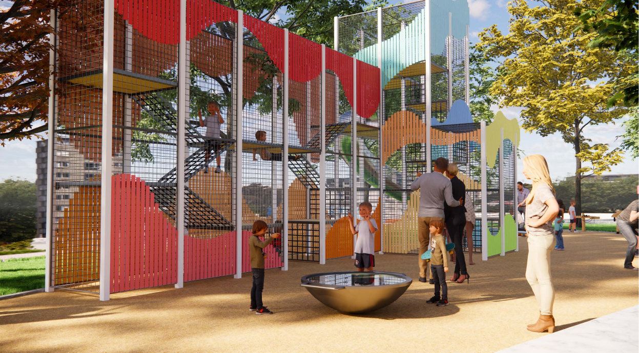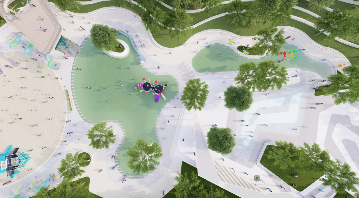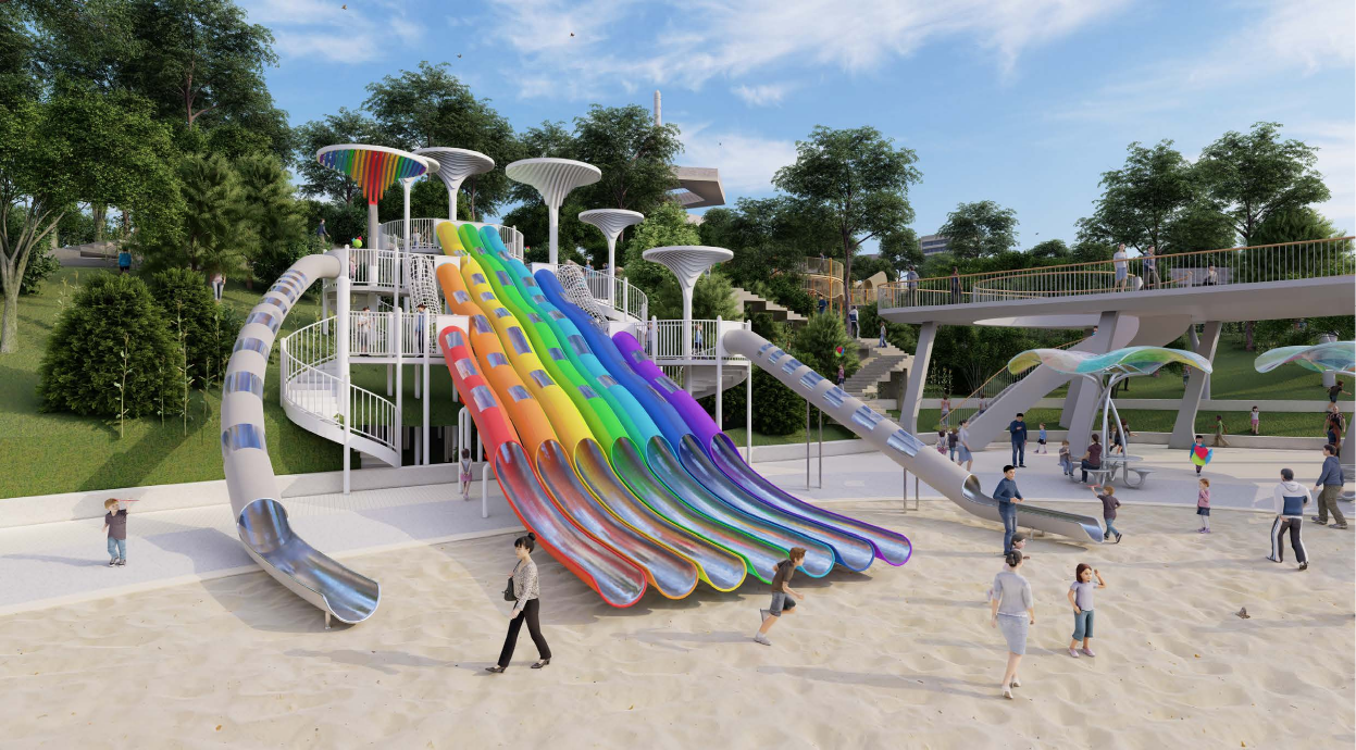 設(shè)計師從城市公共空間功能設(shè)計與完善的角度,打造集兒童友好、親子互動、體育鍛煉、拍照打卡、自然休閑功能于一體的綜合性公園,打破碎片化的城市公共空間更新方式,建造一處功能豐富的、包容性強(qiáng)的、可有效支持多群體、多類型需求的共享空間。有效解決項目區(qū)域公共性、功能性空間不足問題,健全城市基本公共服務(wù)功能水平。