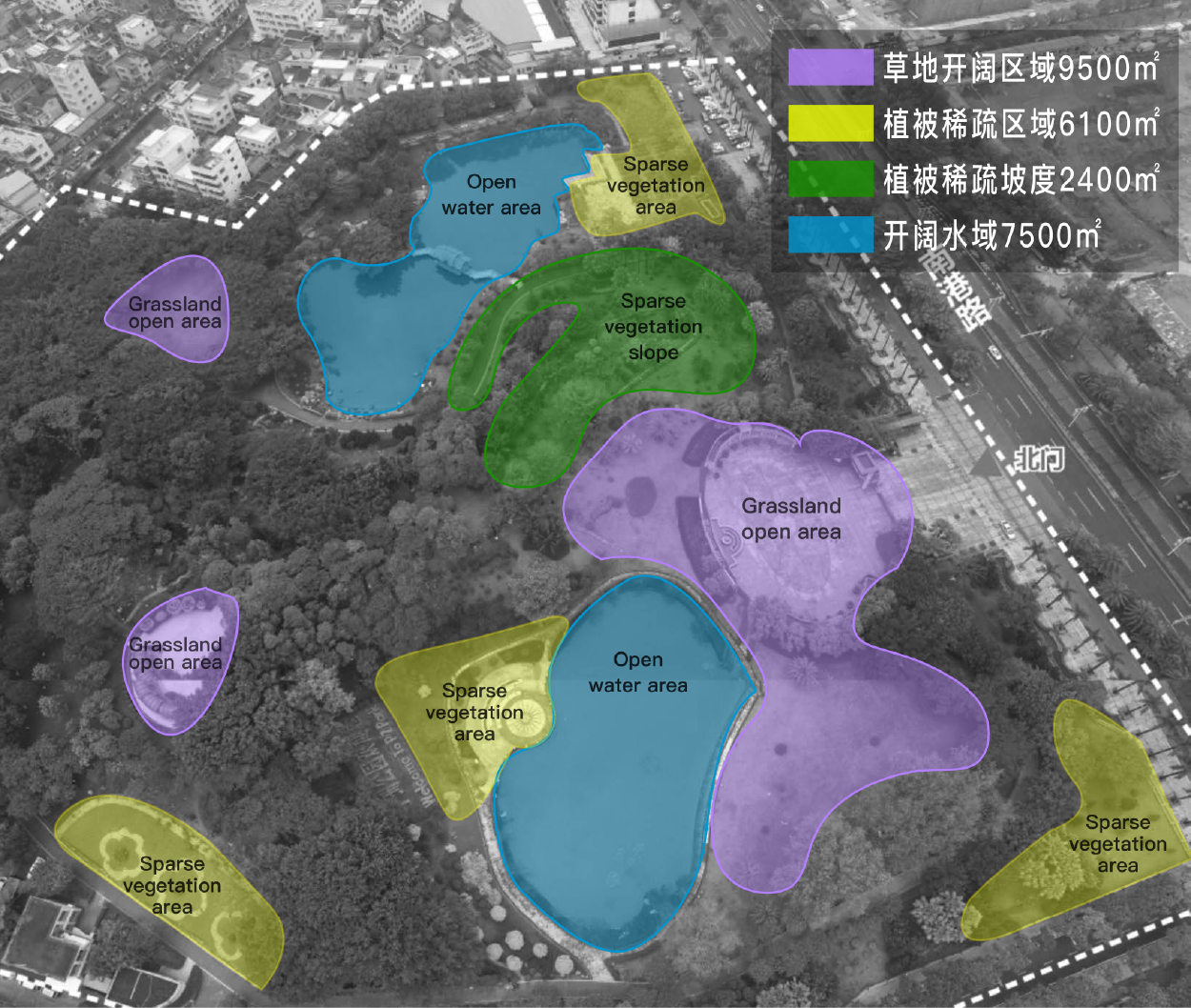 桂城作為南海中心城區(qū),地處廣佛大都市圈核心區(qū)域的廣佛黃金走廊,文商旅產(chǎn)業(yè)資源豐富,人流量大。原平洲公園場地綠化覆蓋率高,水域面積大,周邊現(xiàn)有公園以觀光、商業(yè)活動為主,缺少高品質(zhì)互動型兒童公園。設(shè)計師應(yīng)思考如何更高效地通過功能、需求融合獲得更多的共享空間,最大限度地滿足兒童和全齡用戶需求,實現(xiàn)公園的可持續(xù)生存發(fā)展。