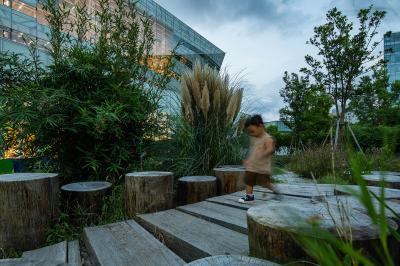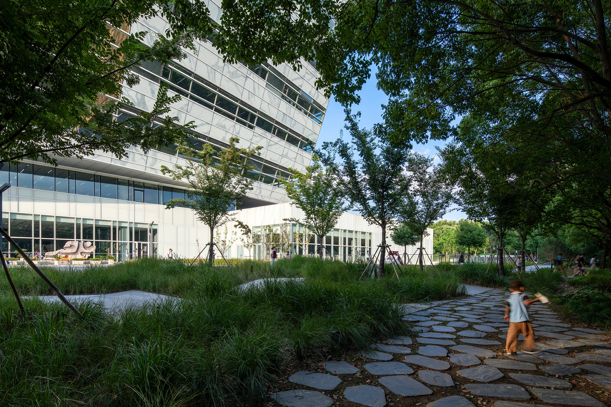 ASPECT Studios的景觀設(shè)計(jì)師們利用一系列層次豐富的空間,將圖書(shū)館與上海最大的開(kāi)放式綠地系統(tǒng)連接起來(lái),與此同時(shí)充分考慮活動(dòng)功能需求,將室內(nèi)場(chǎng)景延伸到了自然環(huán)境中。