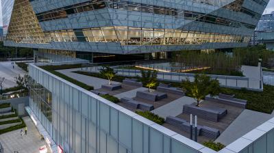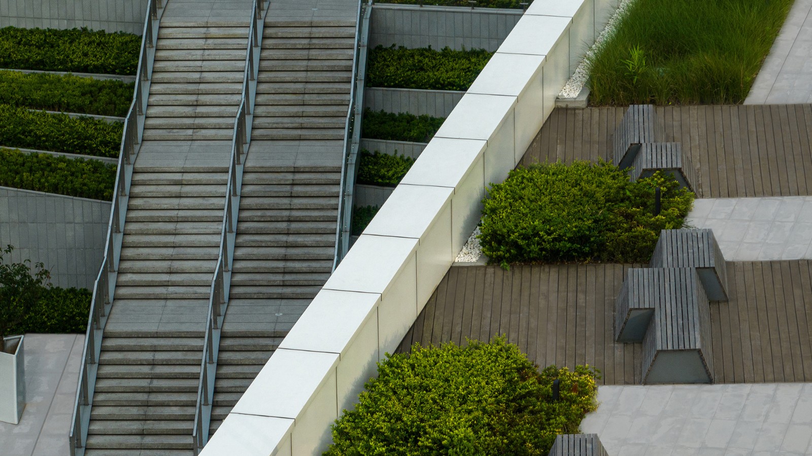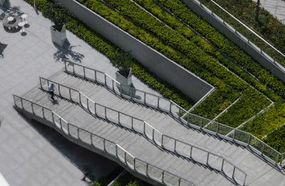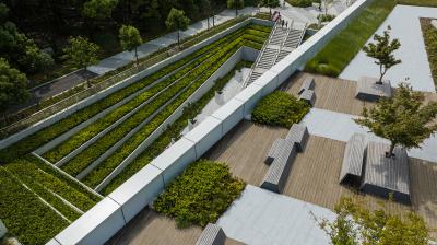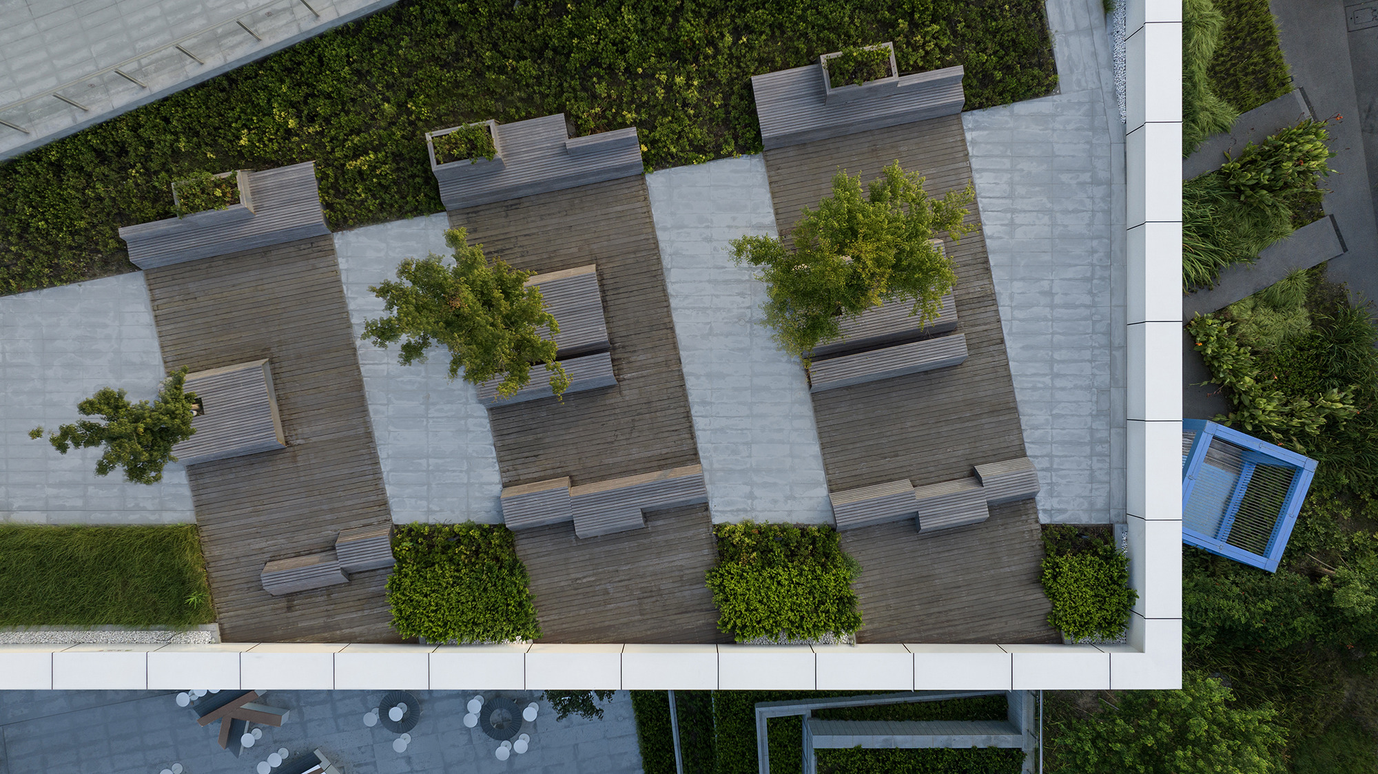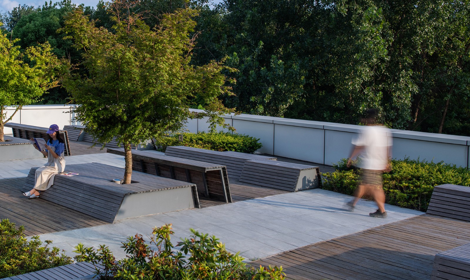 景觀層次分明的空中花園,為俯瞰世紀(jì)公園和整個(gè)城市提供了不同視線和空間體驗(yàn)。散布在樹(shù)蔭下的休憩座椅,是遠(yuǎn)離城市喧囂的小憩之地,也是欣賞浦東天際線的絕佳位置。
