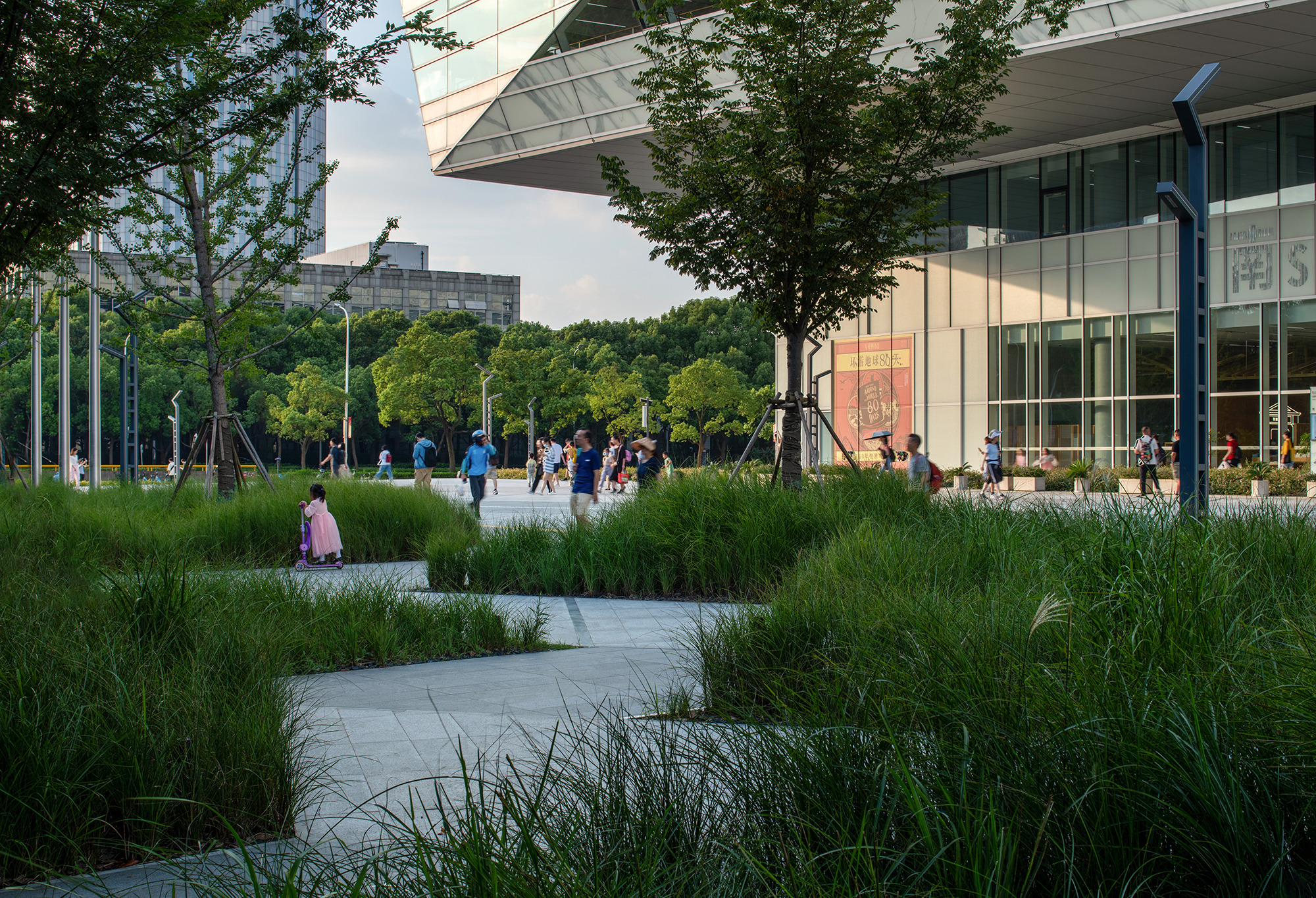 基于整體設(shè)計(jì)愿景,上海圖書(shū)館的景觀設(shè)計(jì)升華了圖書(shū)館的傳統(tǒng)精髓,使之從藏書(shū)寶地轉(zhuǎn)變成為一個(gè)內(nèi)容豐富的相互交集的社區(qū)空間。