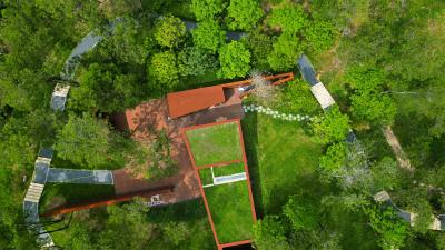 往里探尋,浸潤(rùn)于荒野自然的生機(jī)中。入口通道延續(xù)空間表情,就地取材,借用山里散置的自然石塊作為擋墻兼種植池的方式,讓它仿佛從大山中自然生長(zhǎng)出來,達(dá)到自然而質(zhì)樸的狀態(tài)。