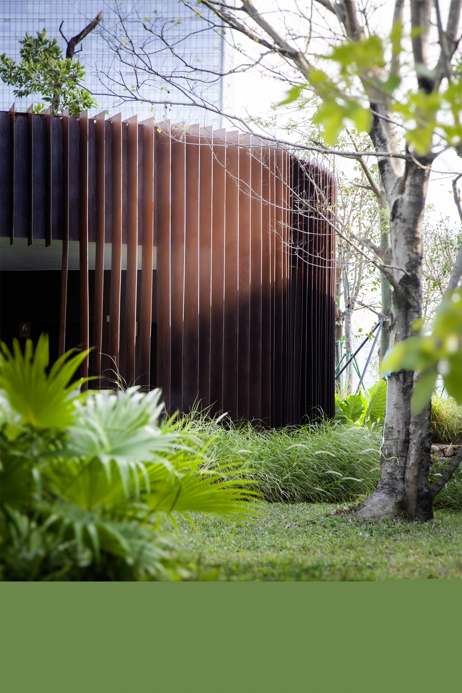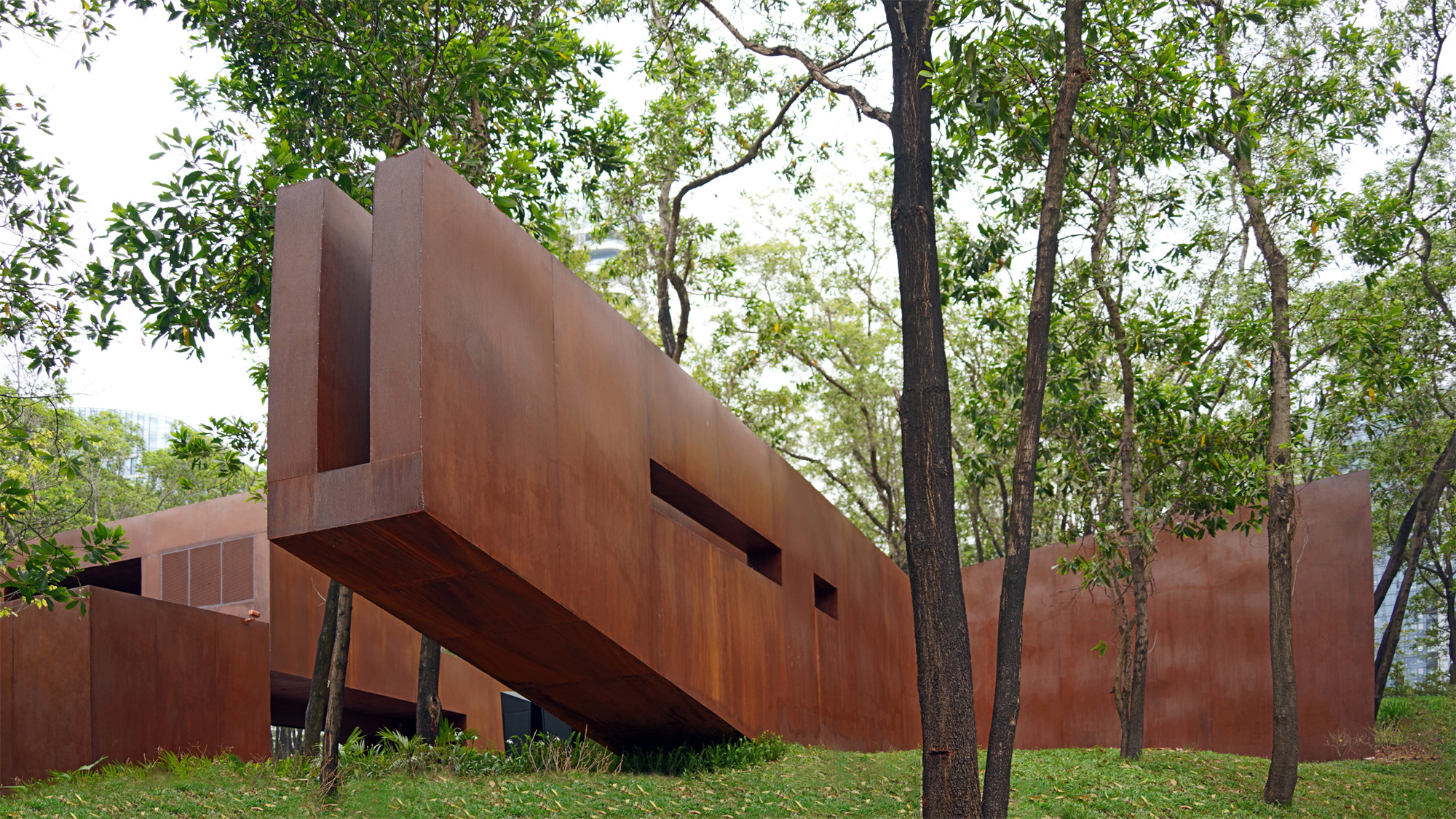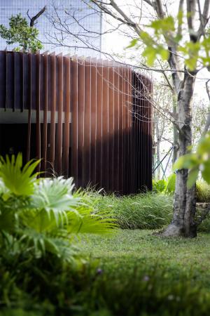 漫步迂回,在矩陣花園里憩歇,這里為人們提供遮風(fēng)避雨的室內(nèi)外休息空間,它由4組雕塑體量穿插于樹林之中,讓人們能夠在建筑與景觀的交互中享受穿梭帶來的獨(dú)特體驗(yàn)。