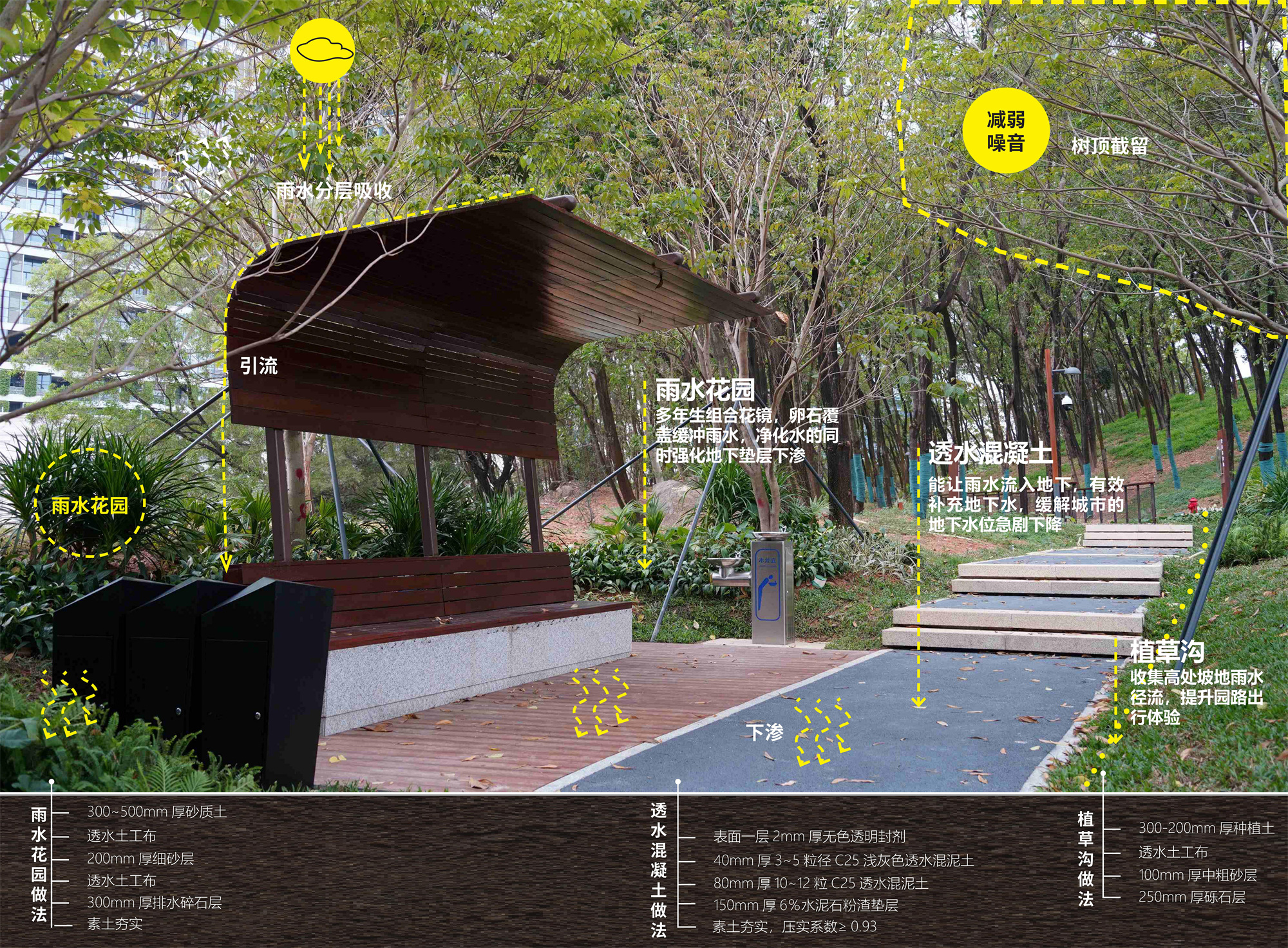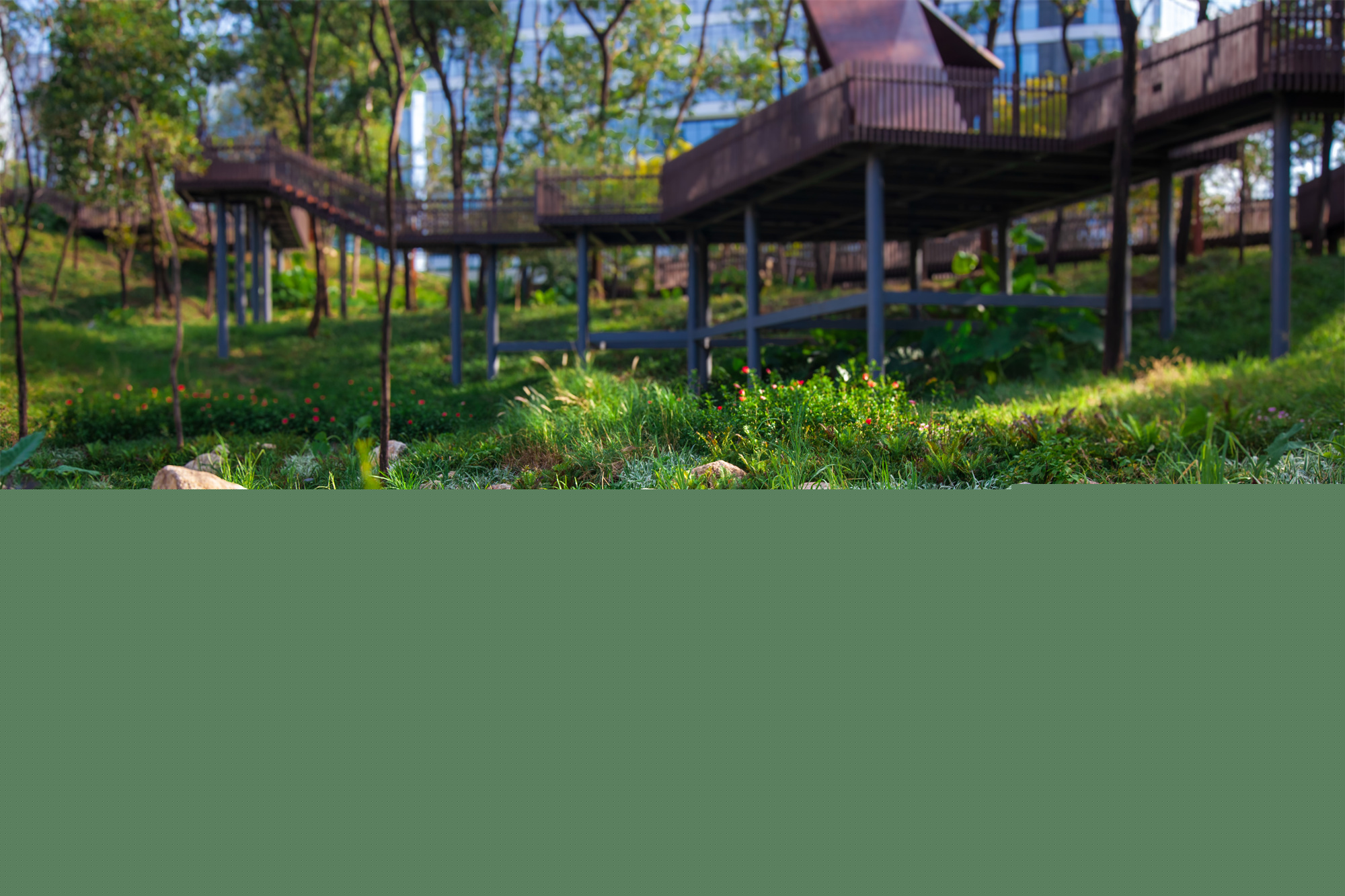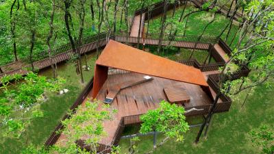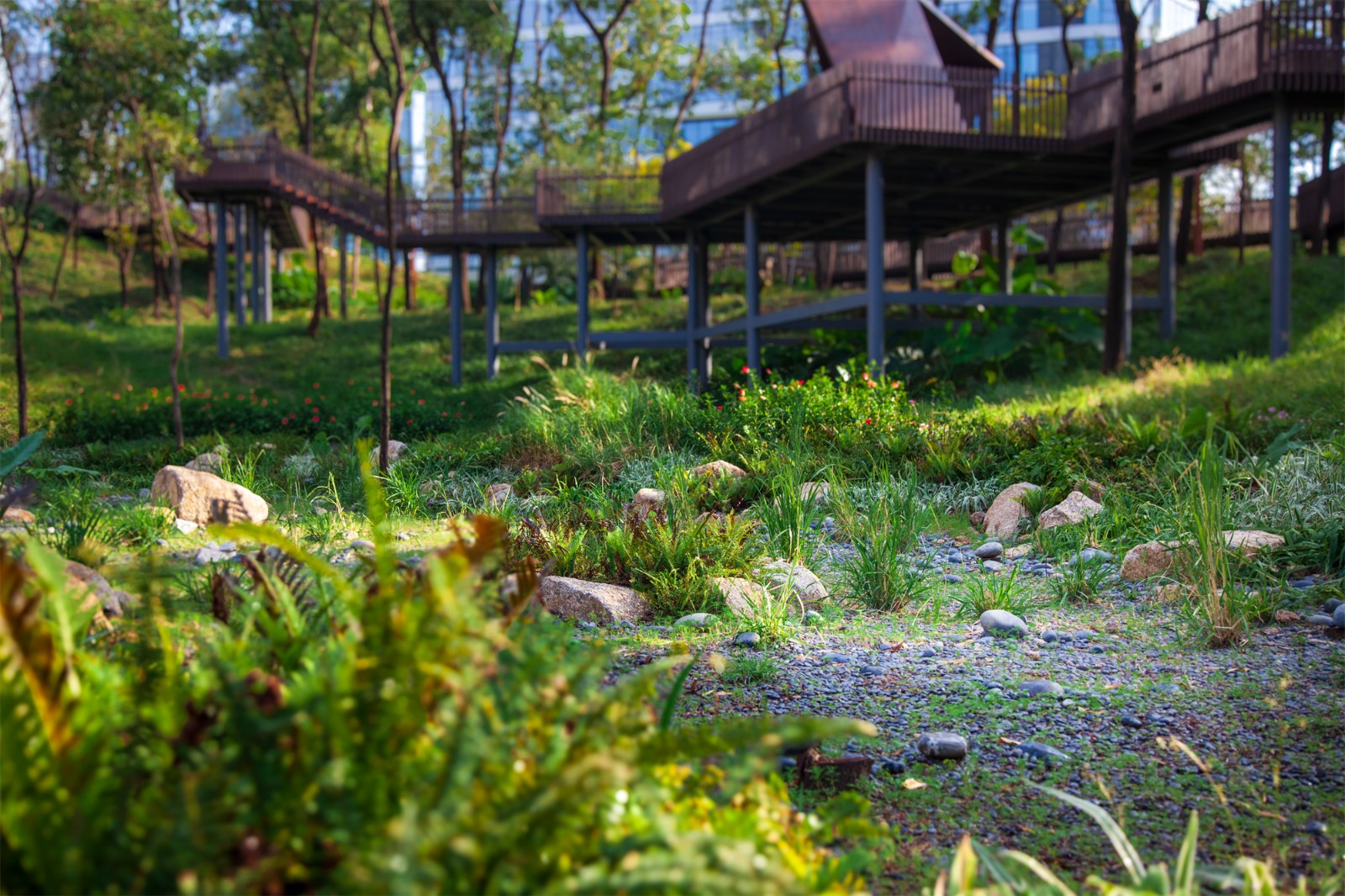 當(dāng)你走進(jìn)這片深藏于山林中的凈土,你會(huì)遇見高空棧道觀賞區(qū)、青年戶外科普?qǐng)龅?、雨水花園以及休閑活動(dòng)空間等場(chǎng)景,每個(gè)空間都是獨(dú)具記憶點(diǎn)的場(chǎng)景,為游客創(chuàng)造了豐富的景觀游賞體驗(yàn)。