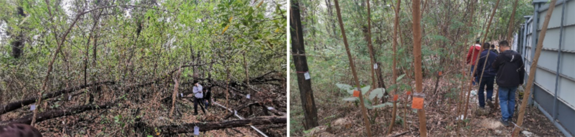在山體較平緩處,以棧道架空的方式抬升地面,減少人為活動(dòng)的干擾破壞,留住更多原生態(tài)蕨類植物,同時(shí)對(duì)裸露邊坡進(jìn)行覆綠,為游人提供一方自在休憩的空間。