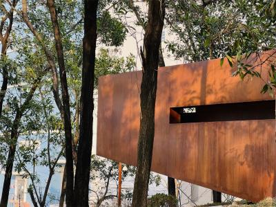 步道前方,是由耐候鋼板定制而成的休閑廊架,廊架采用懸挑式的鋼結(jié)構(gòu)構(gòu)成,產(chǎn)生了一種漂浮感,它不僅供人穿行、觀景,還是連接自然與文化的橋梁。曲折的木棧道,為到訪者提供了既安全又能近距離深入體驗(yàn)荒野趣味的路徑,帶來了全新的徒步體驗(yàn)。