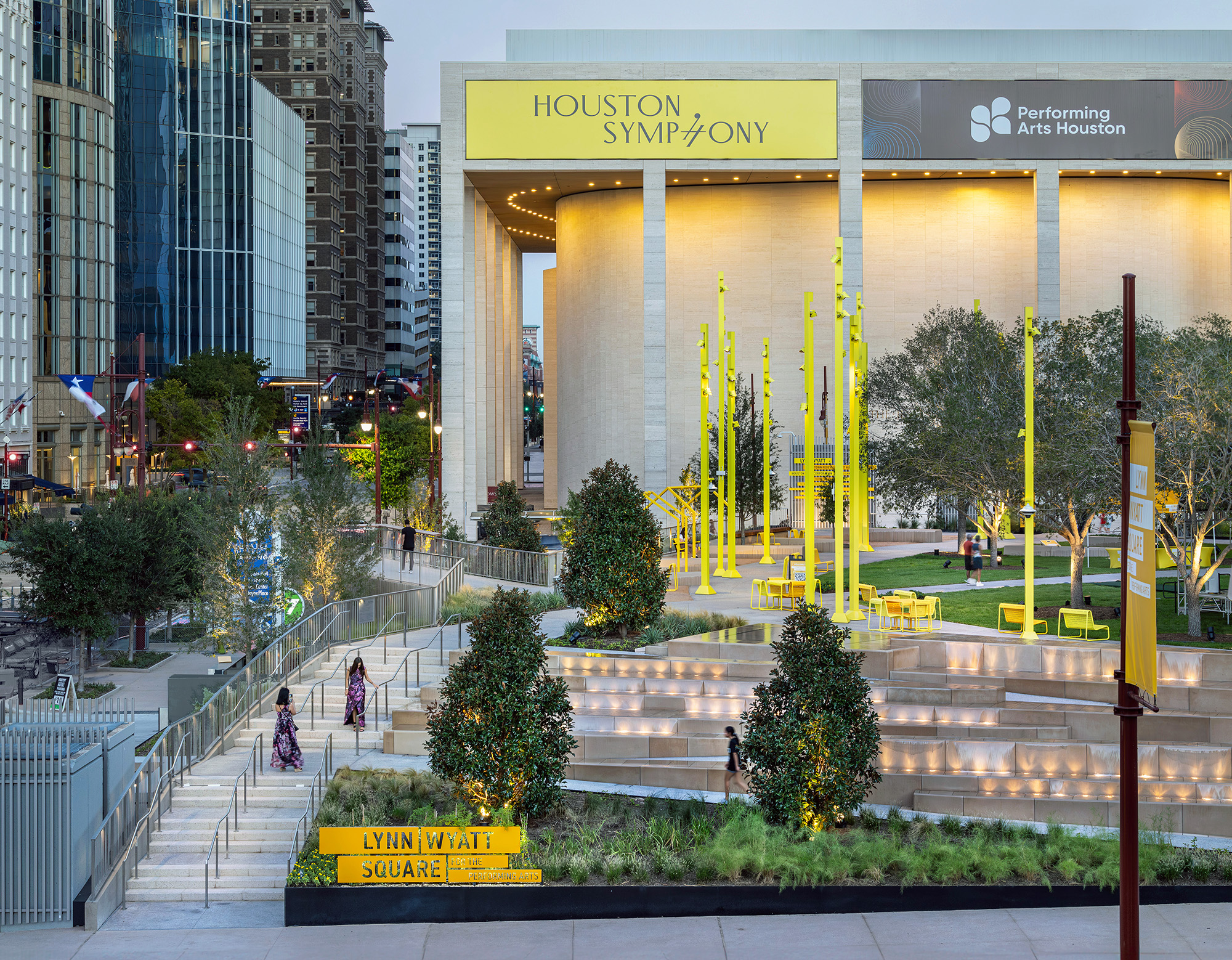 Lynn Wyatt表演藝術(shù)廣場注重可持續(xù)發(fā)展的景觀設(shè)計,并致力于為人們創(chuàng)造一個舒適、溫馨的生活、工作和娛樂環(huán)境。