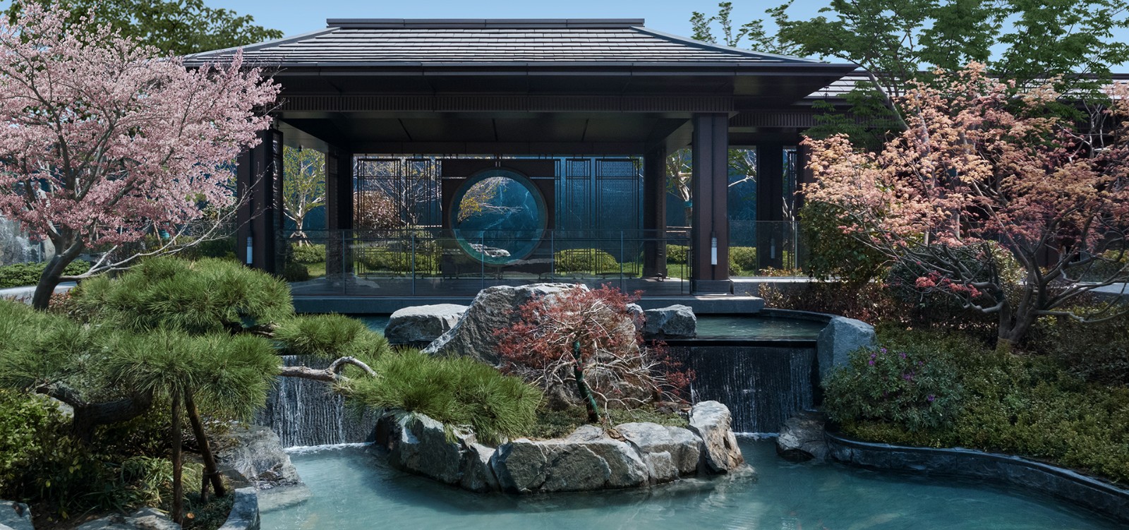 璟悅借鑒“中國四大園林之首”的拙政園為靈感,取東方雅奢造園意境,取境中國傳統(tǒng)造園疏密自然、移步換景、疊石理水的精髓,形成一條中心景觀軸、九大生活美學體驗區(qū),“雖由人作,宛自天開”,打造當代東方園林美學意境。