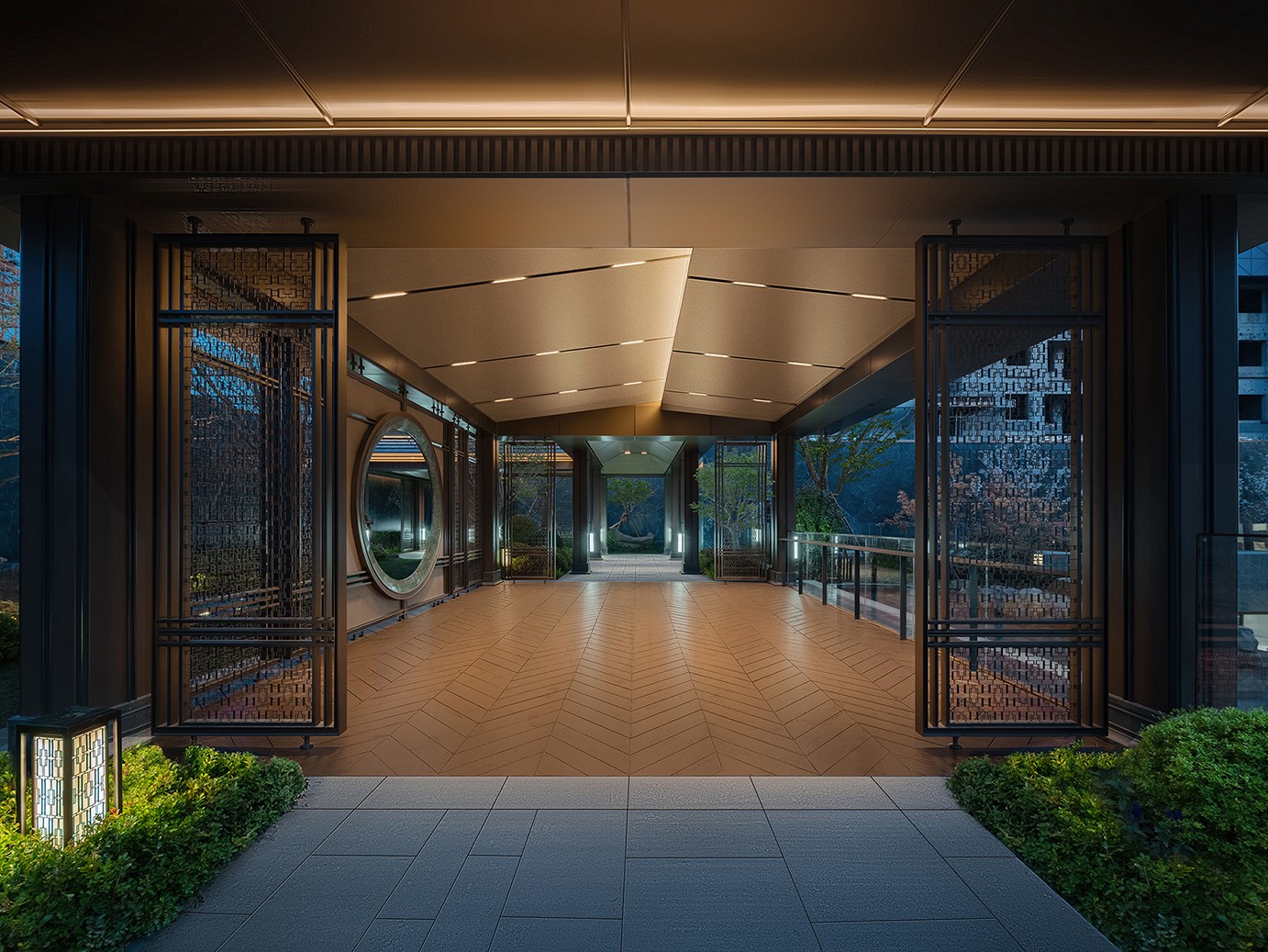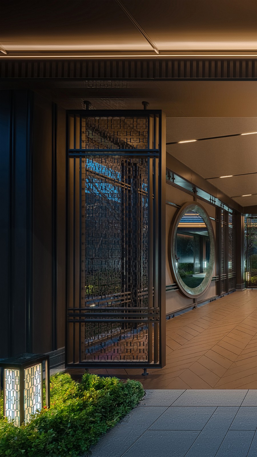 設計將玉石 “步步升錦”演繹在連廊、茶室、燈具、入戶、鋪裝、窗花等細節(jié)中,塑造園中有院、院中有園的多維游園體驗。
