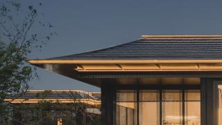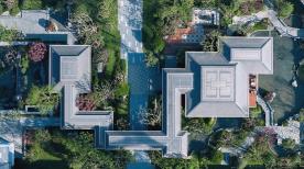 置入一套連廊系統(tǒng)與茶室和門樓相連,統(tǒng)一前后兩進空間,形成天上,地上,地下三個層級路徑串聯(lián)的空間次序,整體空間體驗上形成了登高望遠,合院穿梭,地下探幽的三個層級,深度還原中國古典園林的意境。溪水、幽谷、原石、烏桕,描摹了自然原生的靜隱體驗。