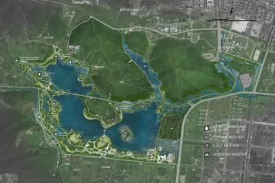 To meet the water planning requirements of 5 million cubic meters total storage and 3.2 million cubic meters regulated storage, the design team integrated factors like historical lake morphology, site spatial pattern, landscape resources, and transportation systems.