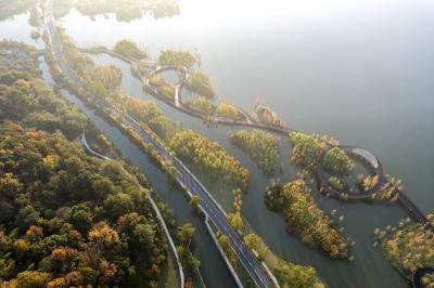 Tongjian Lake Park has become a beloved ecological suburban park and a new destination in Hangzhou. During weekends and holidays, the average visitor flow reaches 10,000 people/day, and recreational transportation facilities like bicycles see daily usage of over 2,000 times.