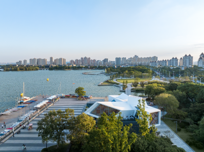 The interconnected network of the Suzhou Cultural and Art Center, Moon Harbor, Cultural Water Corridor, Right Bank Art Plaza and South Waterfront is unified by lush green landscapes, pedestrian walkways, cycling paths and redesigned rest areas. Together, these elements create a seamless experience along the Right Bank of Jinji Lake. This integrated environment fosters a welcoming, sustainable urban lifestyle, offering breathtaking views alongside eco-conscious design for visitors to enjoy.