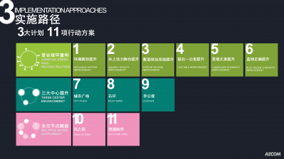Building on AECOM's innovative framework and commitment to ESG principles, we aim to upgrade the public spaces around Jinji Lake to create an "always-on economy" that prioritizes people-centered environments. Our design strategy emphasizes user-oriented, low-carbon pedestrian spaces and reimagines the integrated green loop. Additionally, we aim to enhance three core centers along the waterfront while fostering a sense of belonging through welcoming spaces, supplemented by strategically developed multiple nodes to further enrich connectivity and community engagement. Guided by these strategies, we’ve outlined 11 concrete action plans to ensure the long-term success various projects around Jinji Lake.