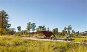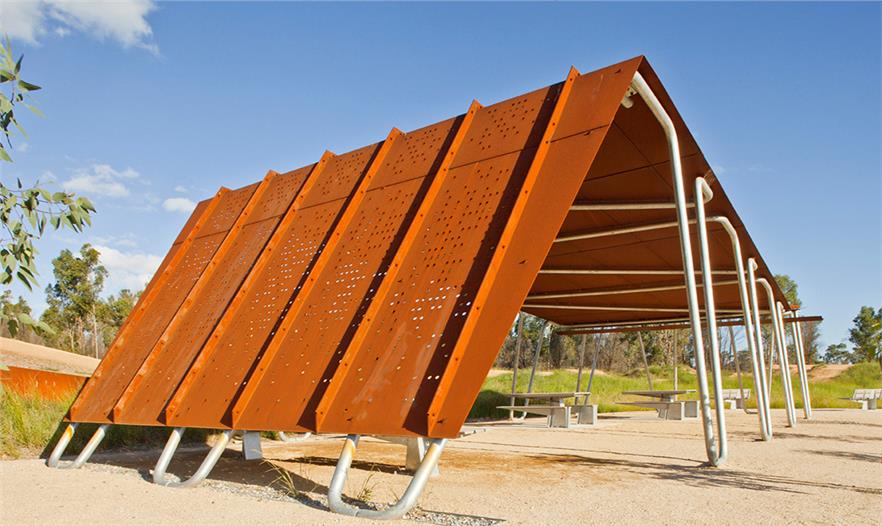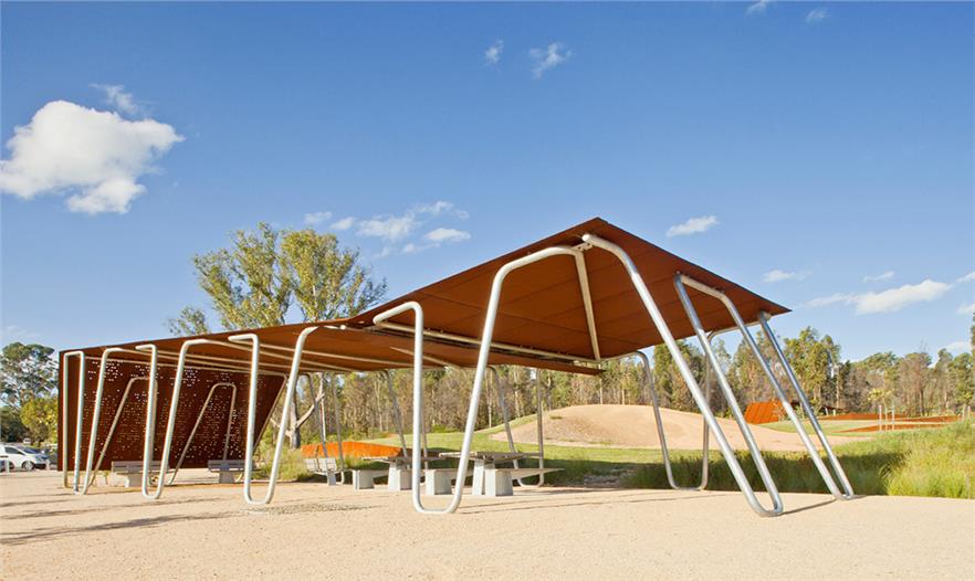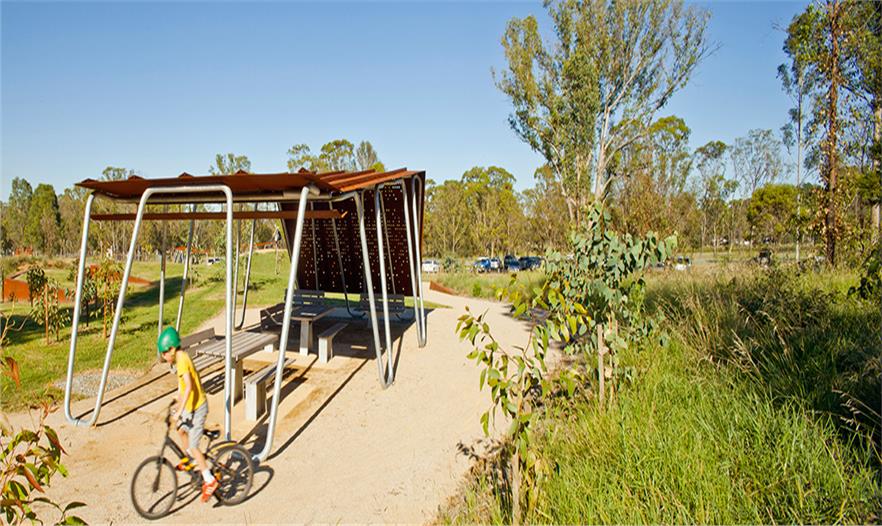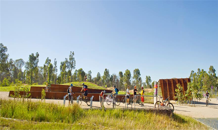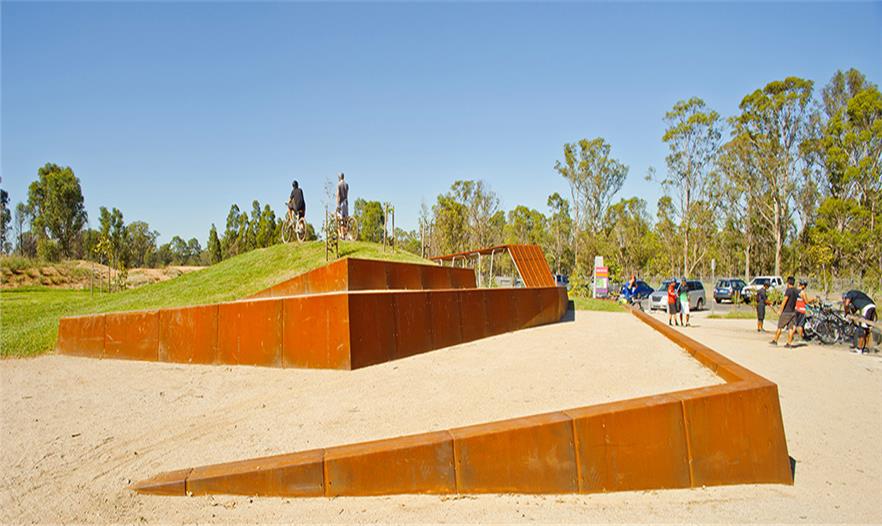 西悉尼公園位于西悉尼的中心,是一個(gè)27千米長(zhǎng)的走廊,包括建在新興住宅發(fā)展區(qū)的原始林區(qū)、開(kāi)放空間和休閑區(qū)域。這個(gè)發(fā)展的城市環(huán)境為這個(gè)公園提供了一個(gè)獨(dú)特的公園框架以及滿(mǎn)足不斷變化的休閑娛樂(lè)需求。這個(gè)新的山地自行車(chē)設(shè)施在西悉尼公園內(nèi)建造了一個(gè)動(dòng)態(tài)的區(qū)域,集中用于自行車(chē)越野賽(BMX)和山地自行車(chē)跑道。這個(gè)自行車(chē)設(shè)施包括斜坡道、跳躍車(chē)道和一個(gè)12千米的山地自行車(chē)路段。這個(gè)懷爾德山地跑道不僅提供日?;顒?dòng)需求,而且在主要的自行車(chē)賽事期間滿(mǎn)足游客密集出入和露營(yíng)的需求。這個(gè)活動(dòng)設(shè)施定義了這個(gè)山地自行車(chē)跑道,同時(shí)建立了這個(gè)區(qū)域的特色。這個(gè)活動(dòng)區(qū)域是該地區(qū)社會(huì)活動(dòng)的焦點(diǎn)區(qū),有非正式的觀看臺(tái)、墻壁和野餐區(qū)。所有的這些都集中在觀看自行車(chē)活動(dòng)上。這個(gè)新設(shè)施建在景觀上面,作為一個(gè)簡(jiǎn)單、區(qū)域構(gòu)造、粗糙卻精妙的建筑元素,展現(xiàn)出山地自行車(chē)文化和美學(xué)。
