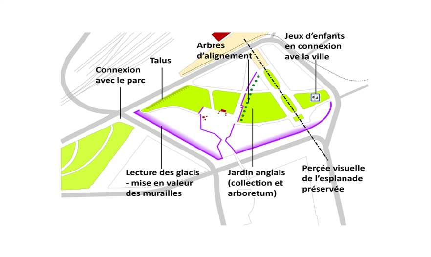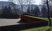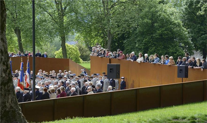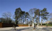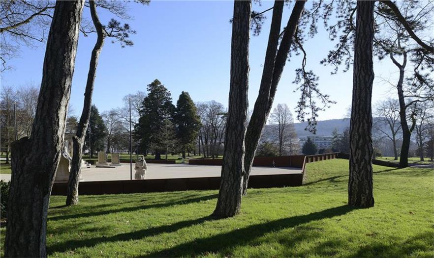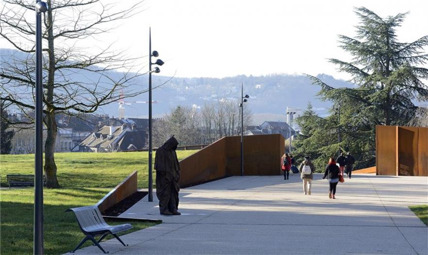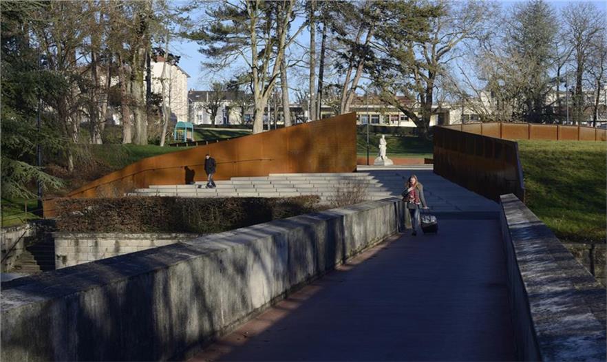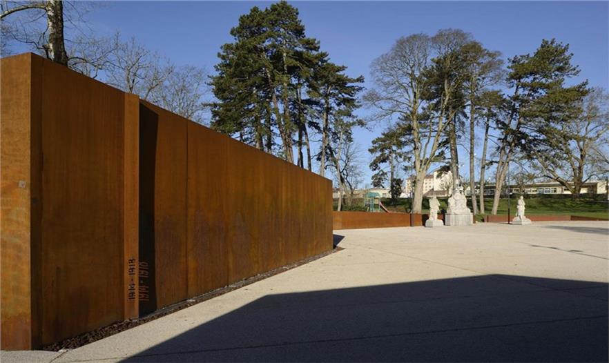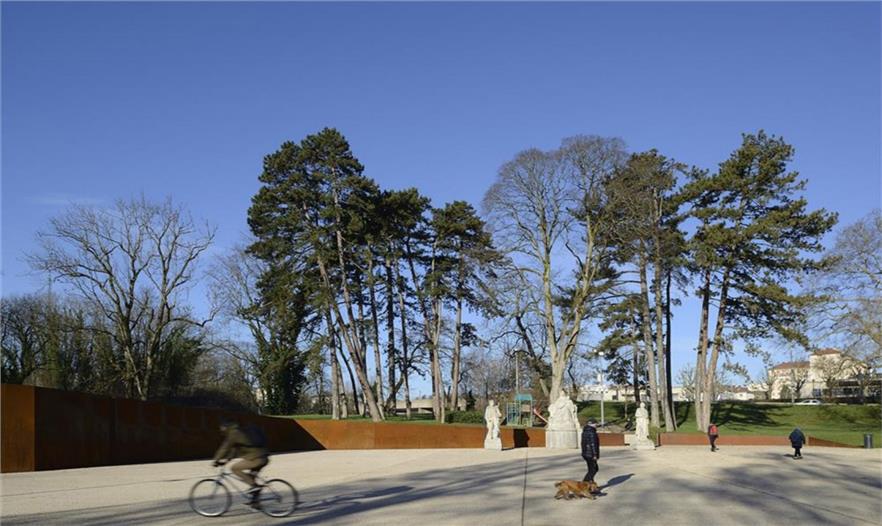 在Parc des Glacis核心地帶,曾是一座沃邦(Vauban)防御工事用的堡壘,這個紀(jì)念性的場地由耐候鋼壁環(huán)繞包圍,鋼壁像戰(zhàn)壕一樣分割場地,并且顯示著地形的變化。