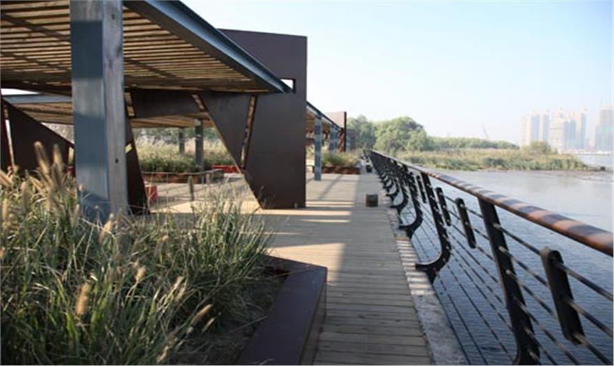 世博后灘公園為上海世博園的核心綠地景觀之一,位于“2010上海世博園”區(qū)之西端,位于黃浦江之東岸之與浦明路之間,南臨園區(qū)新建浦明路,西至倪家浜,北望盧浦大橋,占地18公頃。場地原為鋼鐵廠(浦東鋼鐵集團(tuán))和后灘船舶修理廠所在地,2007年初開始,由北京大學(xué)教授俞孔堅(jiān)領(lǐng)銜“土人設(shè)計(jì)”團(tuán)隊(duì)設(shè)計(jì),2009年10月建成。設(shè)計(jì)者倡導(dǎo)足下文化與野草之美的環(huán)境倫理與新美學(xué)思想,用當(dāng)代景觀設(shè)計(jì)手法,顯現(xiàn)了場地的四層歷史與文明屬性:黃浦江灘的回歸,農(nóng)業(yè)文明的回味,工業(yè)文明的記憶和后工業(yè)生態(tài)文明的展望。最終在垃圾遍地、污染嚴(yán)重的原工業(yè)棕地上,建成了具有水體凈化和雨洪調(diào)蓄、生物生產(chǎn)、生物多樣性保育、和審美啟智等綜合生態(tài)服務(wù)功能的城市公園。