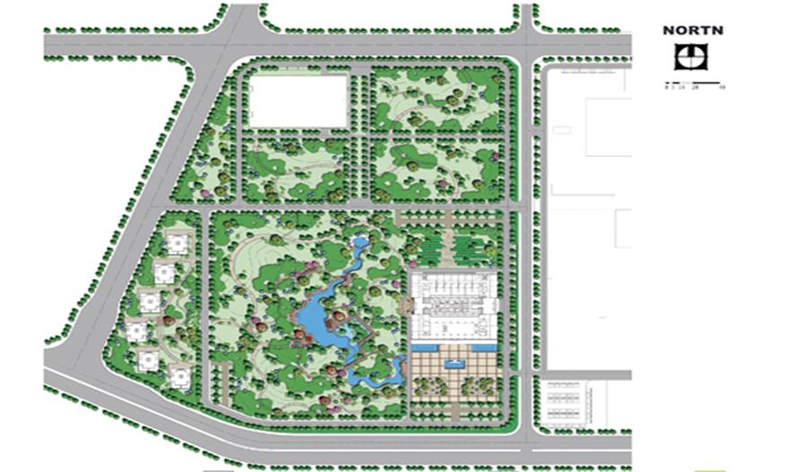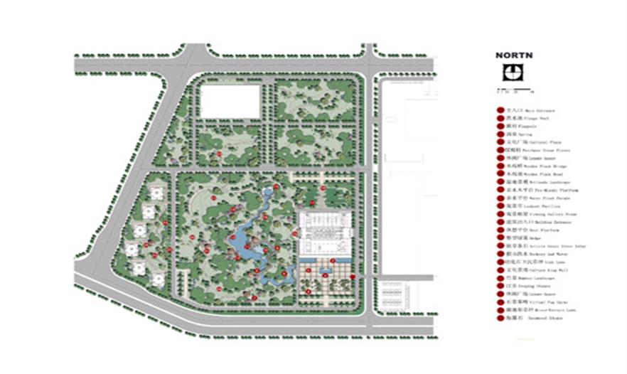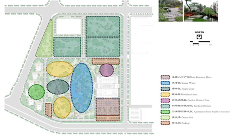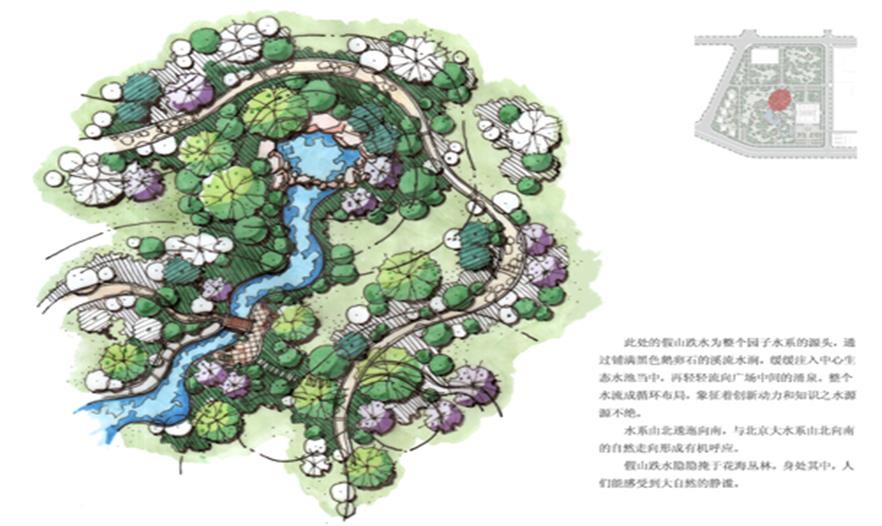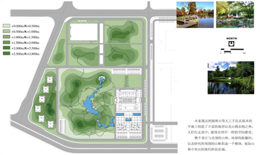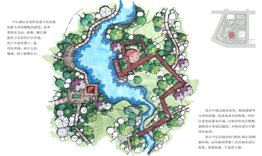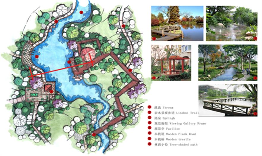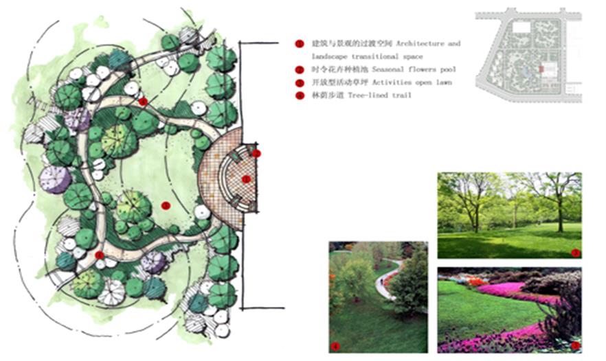 (2)呈現(xiàn)景觀藝術(shù)——營建一個處處有綠色的樹木花草、清澈的水體、清新的空氣、舒適優(yōu)雅的工作和寧靜的環(huán)境,提供使用、觀賞、休憩功能;