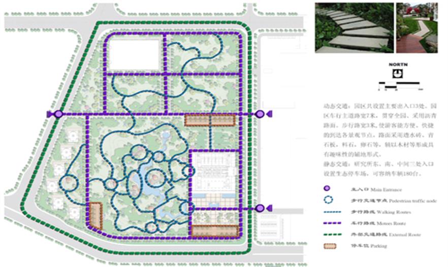 (4)彰顯生態(tài)品質(zhì)――強調(diào)生態(tài)管理、生態(tài)消費、生態(tài)宣傳,實踐綠色、生態(tài)、循環(huán)、環(huán)保的理念,運用高科技的環(huán)保生態(tài)技術(shù)及材料,構(gòu)建綠色生態(tài)研究所。