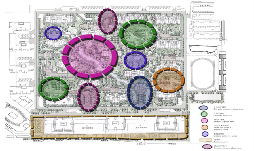 滿足不同年齡段人群的參與要求,設(shè)有兒童游樂區(qū)、廣場、休閑區(qū)等,使各類居民各得其所。