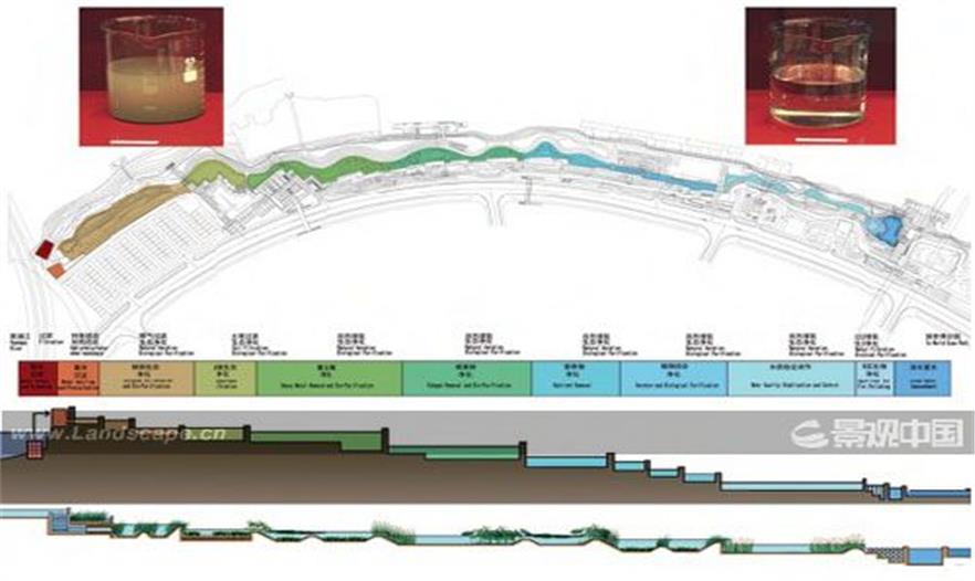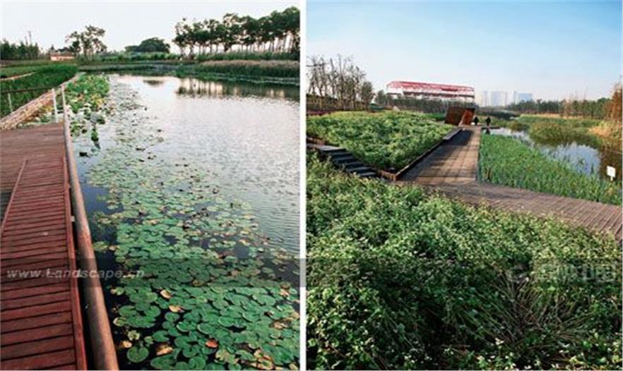 坐落于黃浦江邊的后灘公園,為這片原為嚴重污染的工業(yè)棕地注入了新的景觀活力。公園設計了一個集生態(tài)雨洪防控、工業(yè)原料回收再利用、城市農業(yè)于一身的人工濕地,這種恢復性的設計理念旨在以一種富有美感的處理手法解決河水污染問題,整治這塊荒蕪之地。景觀在水問題上的生態(tài)基礎價值在此項目中得到了充分體現(xiàn)。