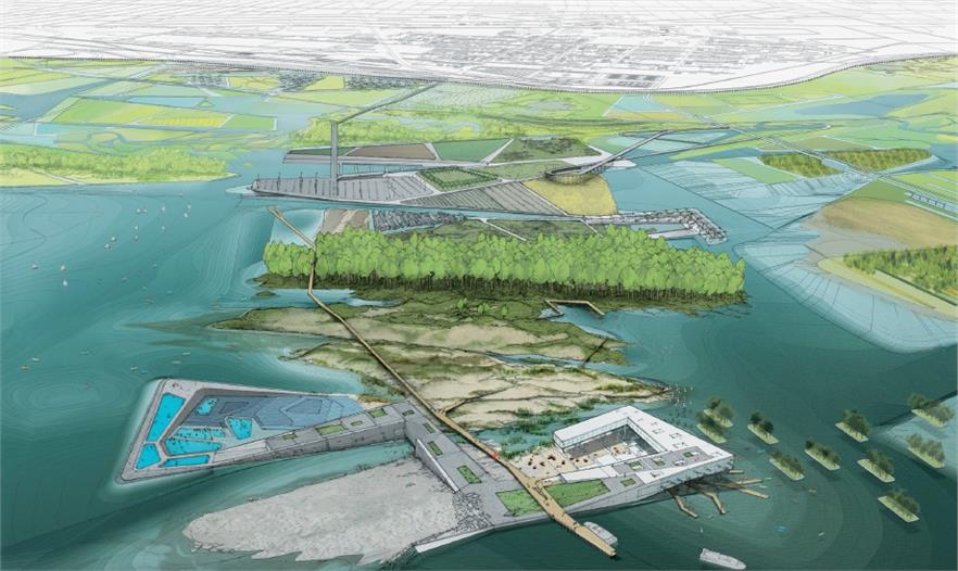 這個區(qū)域包括自由州立公園、自由女神像和埃利斯島。伴著不斷上升的海平面,這個區(qū)域?qū)碜⒍〞А?/span>LTL建筑事務(wù)所團隊為這個區(qū)域構(gòu)想了一個未來,以1860~1928年期間,由于作業(yè)港口內(nèi)鐵路的開通而產(chǎn)生的大量垃圾填埋場為主要對象。面對著有水才有景觀的挑戰(zhàn),在LTL團隊的構(gòu)想中,利用開發(fā)土地所需要的條件要以不間斷的水動力和復(fù)雜的鋸齒狀海岸線輪廓的改變?yōu)闇?zhǔn)則。這種構(gòu)想并不像傳統(tǒng)的防御式手法,如修造高高的防海堤來強調(diào)和界定水岸邊緣那樣,LTL團隊以增加16 100m~72 400m左右的海岸線為目標(biāo),并由此來創(chuàng)造一種全新的景觀,同時也為未來城市生活帶來了許許多多的可能性。