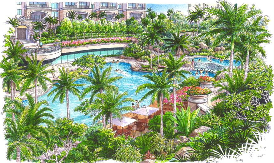 項目概況:本項目設計堅持“打造中國地產景觀第一盤”的戰(zhàn)略原則,在社區(qū)生態(tài)環(huán)境、休閑設施配套、景觀場景設計、小區(qū)游覽路線組織幾大方面著重優(yōu)化,并且以高檔次的材料、豐富多樣的植物、一絲不茍的施工工藝、無處不在的水景、四季常藍的景觀泳池,努力營造出配合豪宅定位的高質量的居住生活環(huán)境,向人們展現了一個世界級的國際人居環(huán)境的典范。