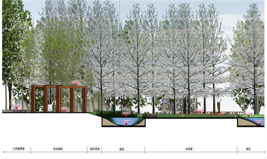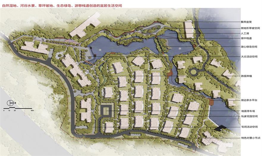 本項(xiàng)目以簡約現(xiàn)代的風(fēng)格營造多元化復(fù)合功能空間,傾力打造大氣時(shí)尚、回歸自然、充滿活力的生活社區(qū)。設(shè)計(jì)著重塑造駁岸空間,通過道路與水體的親近離合關(guān)系變化,水生植物的錯(cuò)位出現(xiàn),自然駁岸的突出與縮進(jìn)來打造親近生態(tài)自然的水體景觀感受。生態(tài)、現(xiàn)代的環(huán)境設(shè)計(jì)足以讓人們體驗(yàn)到自然天成,遠(yuǎn)離喧囂的生態(tài)湖泊之修心養(yǎng)身之感。