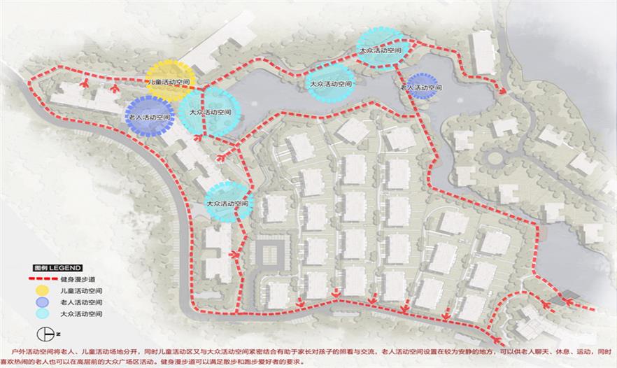 方案以“家,玩畔”為主題,集合了現(xiàn)代、前衛(wèi)的景觀造景手法,追求整體空間環(huán)境的營造和精致的細(xì)節(jié)處理,形成一處回歸自然、充滿青春活力、傍水而居的現(xiàn)代居所。景觀設(shè)計(jì)手法上運(yùn)用折線構(gòu)圖,圍合成為一個(gè)個(gè)開敞或半開放的景觀空間,運(yùn)用有序的植物種植,形成小區(qū)相對輕松自由、靜謐休閑的主題空間。一方面,利用曲折變化的自然湖面水系景觀,將不同景致聯(lián)系為一起,形成各個(gè)空間之間的景觀紐帶。藍(lán)天、綠樹、碧水、小品,讓行走于此的人們有如徜徉在大自然的懷抱之中。另一方面,強(qiáng)調(diào)鄰里的共享空間,創(chuàng)造立體化的植物豎向?qū)哟慰臻g,形如一個(gè)綠色的城市綠心,人們在此盡享和諧共生的社區(qū)休閑場地。