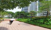 自然生態(tài)湖泊是小區(qū)重點(diǎn)打造的景觀,曲折流暢的湖泊貫穿整個(gè)西北面,讓臨水而居的住戶多了一份生態(tài)美景。自然疊水與生態(tài)綠島打破了湖面單一、平淡的格局,自然石塊壘成的疊水水面使原本自然的湖面多了一些原始趣味,也使湖水在此處有了高差上的變化,與之相對的是湖面的綠島,人們可以通過折形的路橋到達(dá)綠島,也可以通過后期設(shè)置的小船到達(dá)綠島,為湖面增添了些許樂趣。漫步環(huán)道圍繞湖泊外圍可遠(yuǎn)觀湖面,而折形的散步道臨湖而設(shè),其中也不乏親水平臺(tái)與懸挑,使人們親水的活動(dòng)形式趨于多樣化。