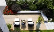 小區(qū)是對一期的再次延續(xù),其入口相對較為自然,主要以植物和地面鋪裝來營造小區(qū)的形象窗口,作為小區(qū)車行的主要入口,在景觀處理上采用現(xiàn)代、簡潔的線條構(gòu)圖,精致的細(xì)部處理,營造簡潔、品質(zhì)的入口空間形象。在鋪裝肌理上,采用灰色調(diào)的石材和磚材鋪貼,使之在規(guī)則的鋪裝形式中顯得更為細(xì)膩精致,經(jīng)得起推敲。