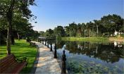 項(xiàng)目以新古典主義風(fēng)格為設(shè)計(jì)藍(lán)本,傳承了歐洲人文傳統(tǒng),以適宜人居為設(shè)計(jì)原則,力求體現(xiàn)生態(tài)、自然、優(yōu)雅、尊貴。在三大湖區(qū)的設(shè)計(jì)過程中,以植物造景為重點(diǎn),通過大量闊葉樹種的密植,將湖與區(qū)內(nèi)主干道隔離,使人在湖邊草坡上和園路上行走時(shí)仿若置身叢林。點(diǎn)綴于綠色植物中的與建筑風(fēng)格統(tǒng)一的觀景亭,為游人提供了休閑場所。精致的歐式紋樣鋪裝,更好地彰顯了歐陸風(fēng)情。