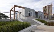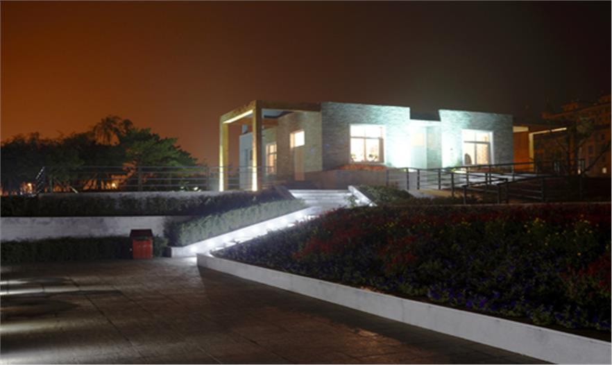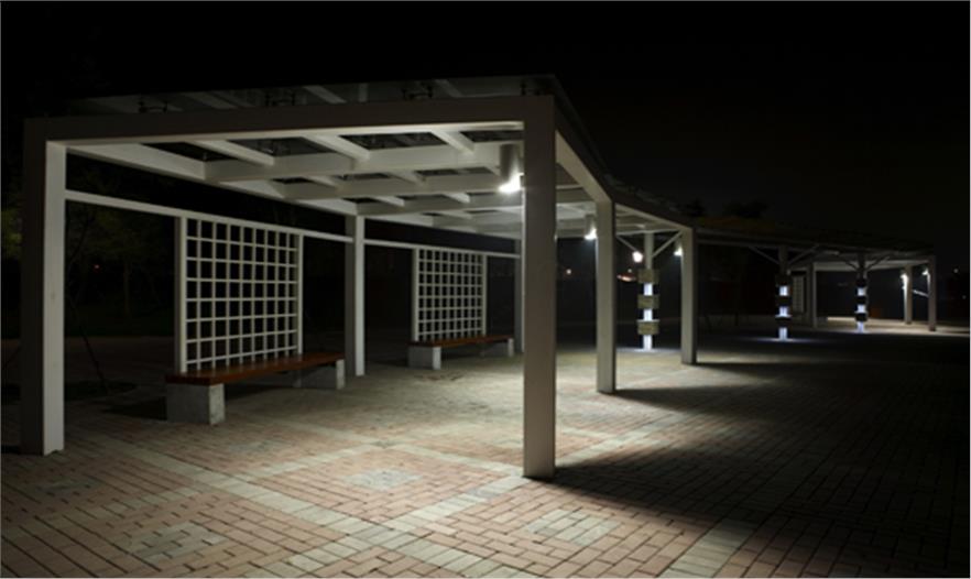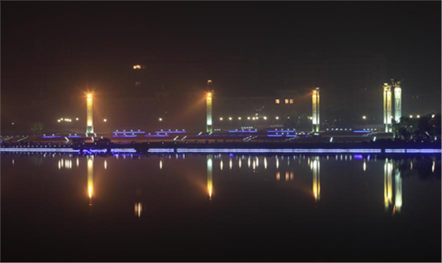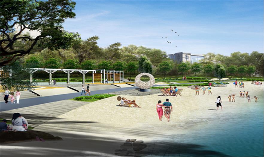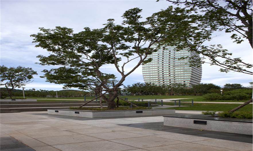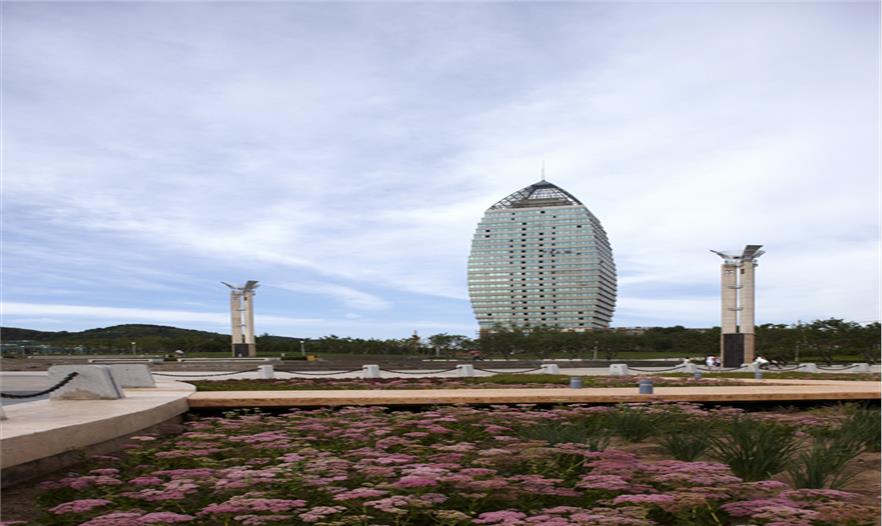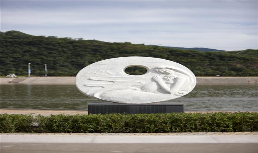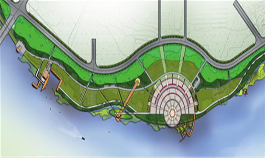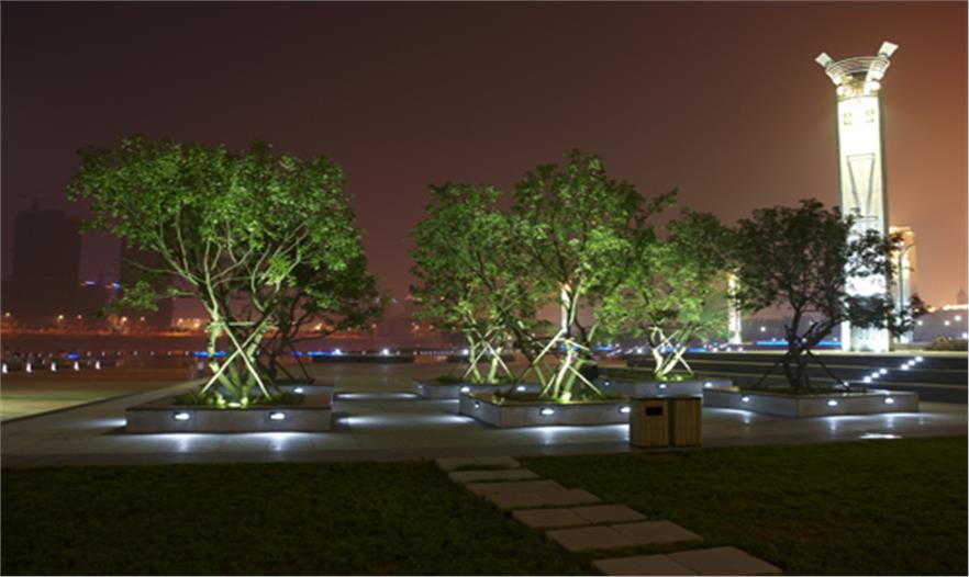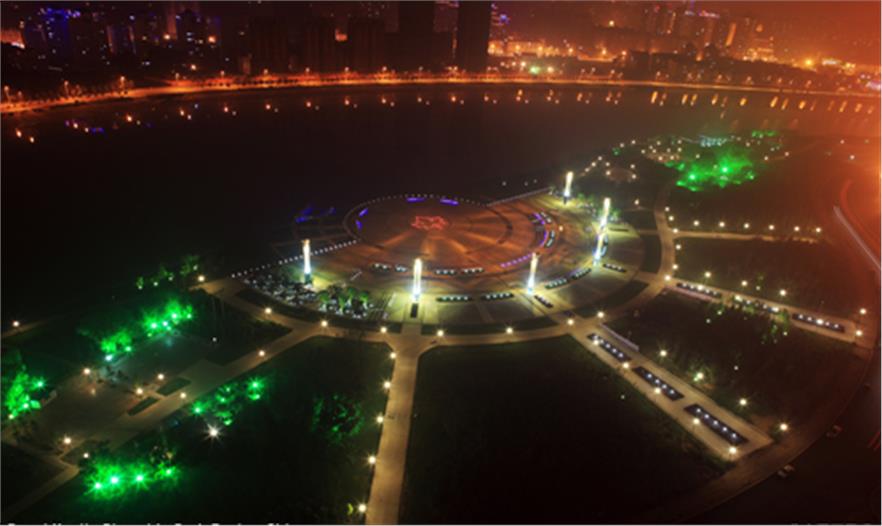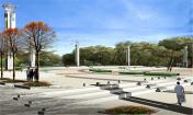 園區(qū)由楓葉廣場、游船碼頭、沙灘、運(yùn)動(dòng)區(qū)等組成,其中楓葉廣場以市民活動(dòng)及大型演出為主要功能定位,布置了三個(gè)不同高程的活動(dòng)空間,滿足不同人群的使用需求,廣場的核心景觀為六座主題雕塑-圣火圖騰,使廣場的氛圍達(dá)到頂點(diǎn),也成為新區(qū)的地標(biāo)。