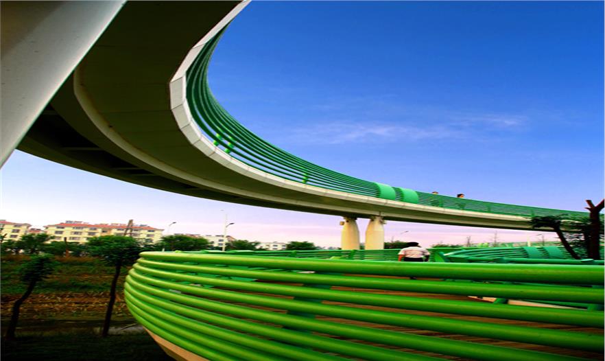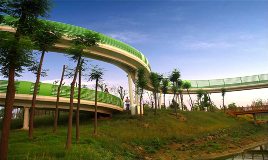 流云水袖橋通過簡單而優(yōu)美的市政元素,將復雜的城市功能和空間結(jié)構(gòu)整合在一起。橋位于江蘇睢寧縣徐寧路,跨越橫穿城市的快速干道和多個水系,連接縣城核心區(qū)的廣場和馬路對面森林公園。主橋全長635米,總建設(shè)長度869米,總面積2700平方米。4道輔橋總長242米,橋面寬度2.5米至9米之間不等,橋面坡度0.4%至12.6%之間。流云水袖橋過路面保證凈高4.5米。