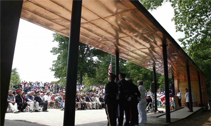 個公園主要是向退伍軍人及其家屬表示敬意。不同于一般意義上的開闊地,這里的景觀建造重點是體現(xiàn)人們對退伍軍人的緬懷和崇敬,成為當?shù)匾惶幰饬x深遠的區(qū)域。公園內地勢呈緩坡,向一個較深的峽谷延伸。公園作為供市民集聚的正式場所,還帶有較為私密的,供人緬懷的區(qū)域。公園里還有銅制涼亭,青銅墻壁,上面鐫刻著艾默生的兩個詩節(jié)。公園還將成為退伍軍人紀念日等相關互動舉辦的中心場地,也是市民休閑的場地。紀念區(qū)域周圍是紀念矮墻,上面插著國旗。公園里建材和植被的選擇都突出了莊重肅穆的氣氛。