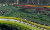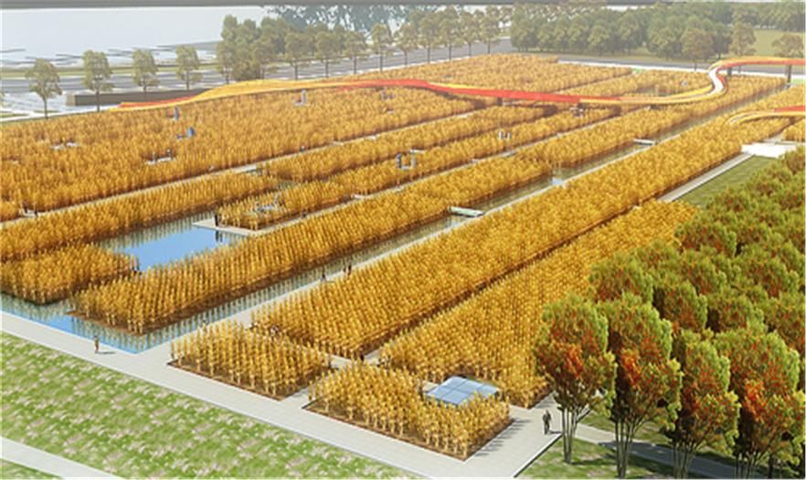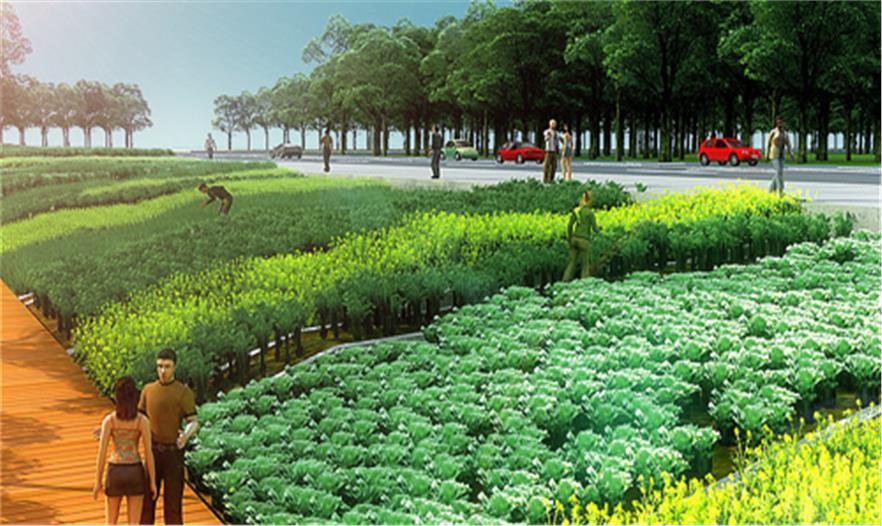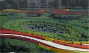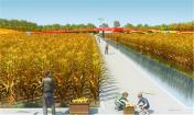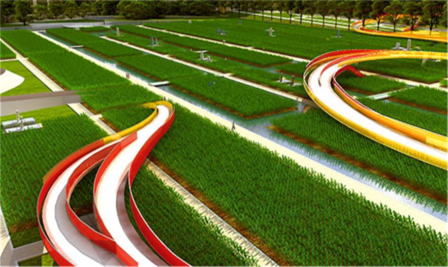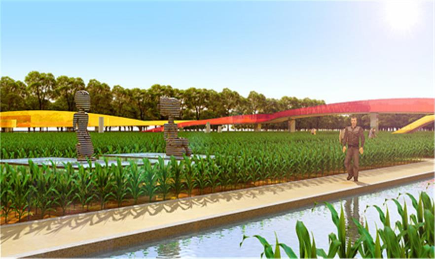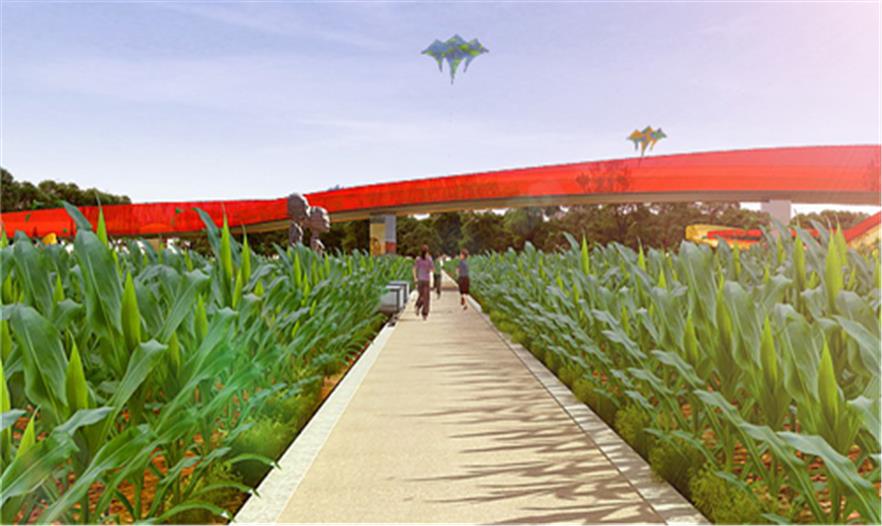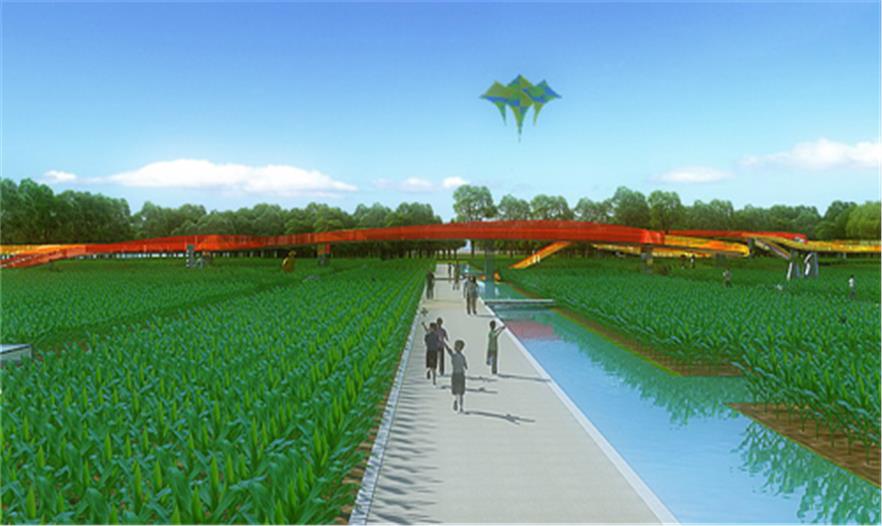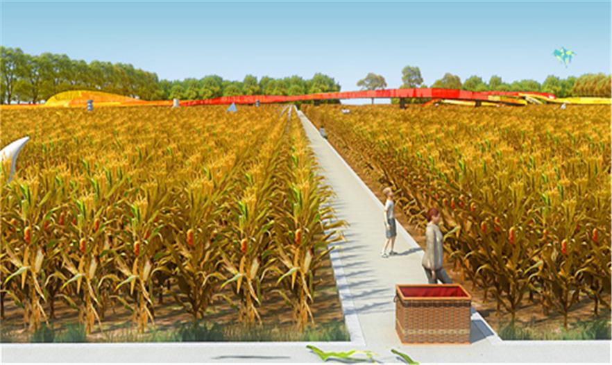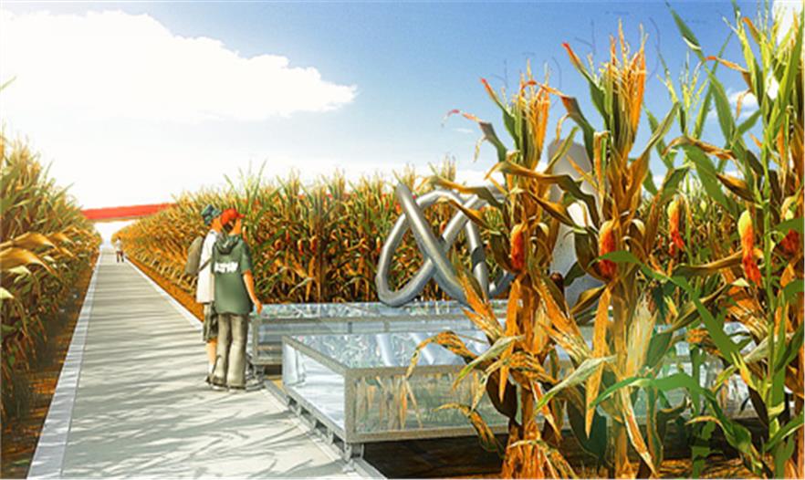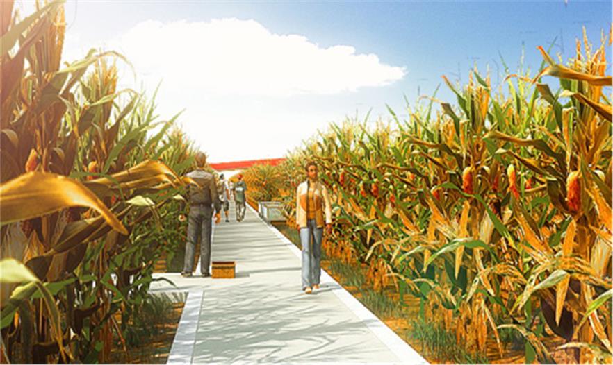 ?。?)藝術(shù)之田:3個(gè)區(qū)中面積最大的在西側(cè),主體為玉米地,是生產(chǎn)性景觀的農(nóng)業(yè)過(guò)程發(fā)生的地方。它的南端是一個(gè)蔬菜園,并與一個(gè)地下紀(jì)念品商店相結(jié)合。該區(qū)的西側(cè)是一系列果園。在北緣還有一個(gè)規(guī)劃中的兒童博物館及戶外游樂(lè)場(chǎng),它被融入生產(chǎn)性景觀之中。