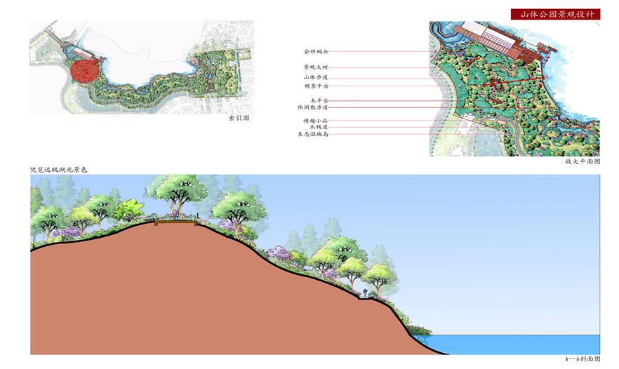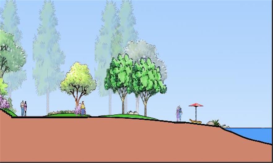 2、山體公園提倡保護(hù)性開發(fā),流線設(shè)計(jì)及環(huán)境打造尊重原有地形地貌,以最少投入打造最好的景觀效果;以健康休閑的有氧步道串聯(lián)整個(gè)步行散步區(qū)與電瓶車觀光區(qū),給參觀者提供有氧的散步空間;在視線良好的制高點(diǎn)設(shè)計(jì)觀景平臺(tái),并結(jié)合原始植被形成統(tǒng)一環(huán)境。