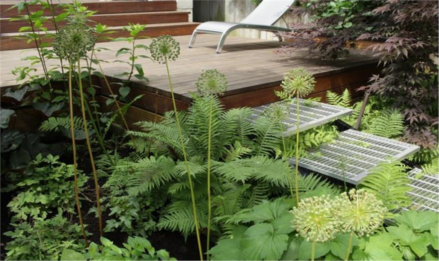 這個(gè)花園位于一棟舊住宅內(nèi),設(shè)計(jì)師對(duì)其進(jìn)行了翻新,在其中增添了一些現(xiàn)代元素。新建的窗臺(tái)、門廊、木工設(shè)施全部是黑色的,與具有復(fù)古氣息的深紅色磚砌花園結(jié)構(gòu)形成對(duì)比,營(yíng)造出經(jīng)典大氣的氣氛。花園里的主要樹木種類為挪威楓樹,又為整個(gè)房間增加了深沉的色調(diào)?;▓@里有精心挑選的灌木,多年生植物,蕨類植物和地被植物,呈現(xiàn)不同色調(diào)的綠色和其他顏色,這樣璀璨的花園形成了該棟住宅很好的前景。整個(gè)花園分為兩部分,一個(gè)是入門處,另一個(gè)是黑石庭院?;▓@里的各種花更為這樣的景色增光添彩。