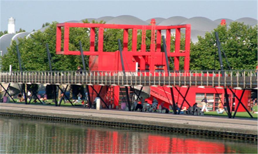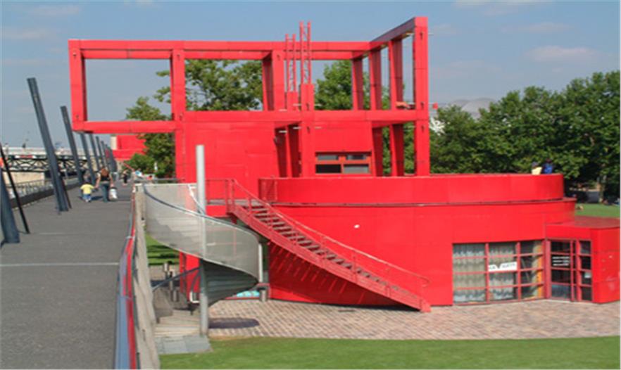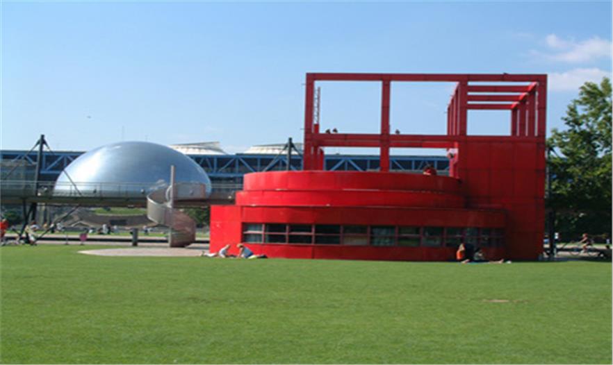 設(shè)計(jì)師將巴黎一處將廢棄的屠宰場(chǎng)和販肉市場(chǎng)改建成公園。在設(shè)計(jì)過程中,設(shè)計(jì)師沒有依例將景觀作為重點(diǎn),而是在遵守該地區(qū)景觀史的基礎(chǔ)上,將拉•維萊特公園公園建成一個(gè)自然元素與人造結(jié)構(gòu)相互融合,形成永久區(qū)域。公園屬于面積廣闊的雕塑公園,可供舉辦各種文化活動(dòng),包括畫廊、舞蹈表演。劇場(chǎng)等等。