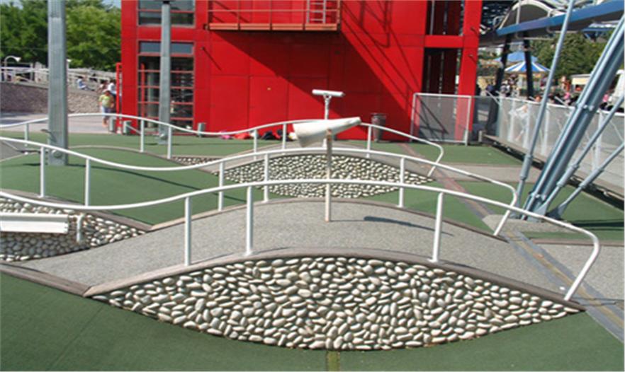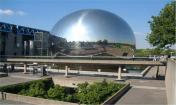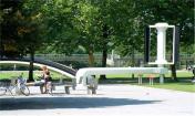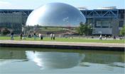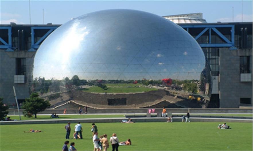這座充滿氣勢(shì)與魅力的維萊特公園,是著名的景觀建筑師伯納 叔米(Bernard Tschumi)在九十代花都北區(qū)都會(huì)更新計(jì)劃中的杰作。廣大的公園(35公頃)就夾縫于像石化工廠的維萊特工業(yè)城(博物館),壯觀的晶體玻璃球(Geode)及曲線優(yōu)美的音樂城(博物館及演奏廳),及音樂學(xué)院,波浪形的天頂大劇場(chǎng)和鐵架玻璃的大市場(chǎng)展覽室等等極現(xiàn)代的建筑物間,并有一條水光幻影,詩意的烏可克(Ourcq)運(yùn)河穿越其間。別開生面的建筑就成為維業(yè)特公園杰佳的布景,而融入公園宏偉的大景觀中。