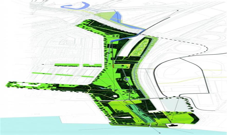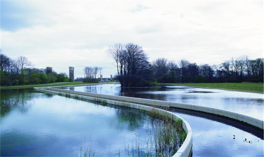 在游客的視野里,這條河流總是若隱若現(xiàn)。這條河的輪廓主要包括人工的水泥河堤以及自然河岸。由于當(dāng)?shù)剡^量的降水,河水經(jīng)常漫出河岸,所以使河岸有多種不同的形狀。河里的鵝卵石不適于孩子們用來建造自己的小堤壩。由于人類的影響,自然的作用并不是非常的明顯。河里寬闊的區(qū)域并不僅僅用來存水,也用來當(dāng)做魚塘,水景公園和孩子們的天然游泳池。公園最主要的部分是河水與北海運(yùn)河的匯流處。河水并不是直接就流進(jìn)了運(yùn)河,而是先在海堤后形成一大片水域,從河里流過來的淡水和運(yùn)河里的鹽水在這里混合在一起。