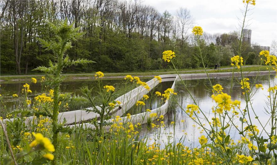 Scheybeek 河發(fā)源于赫姆斯格附近的山里,流經(jīng)Wijkeroog公園,最終到達(dá)北海運(yùn)河。這條河大約高于地平面30cm,這一部分是人為的原因,另一部分是大自然的作用。這條河,以及新的人行道在寬闊的公園空間中顯得非常有層次感。